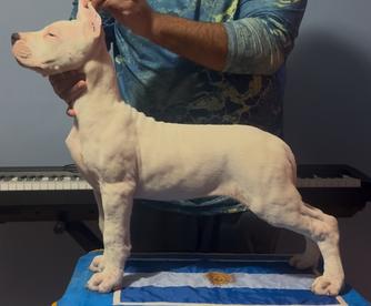CH Predador de La Historia is the first Dogo Argentino to have achieved an AKC Championship title. He is a proven producer of strong Dogos. They have excellent character and structure. They fulfill all of our expectations of a true Dogo with all the attributes we seek in one package. We are proud to have this proven stud in our home.