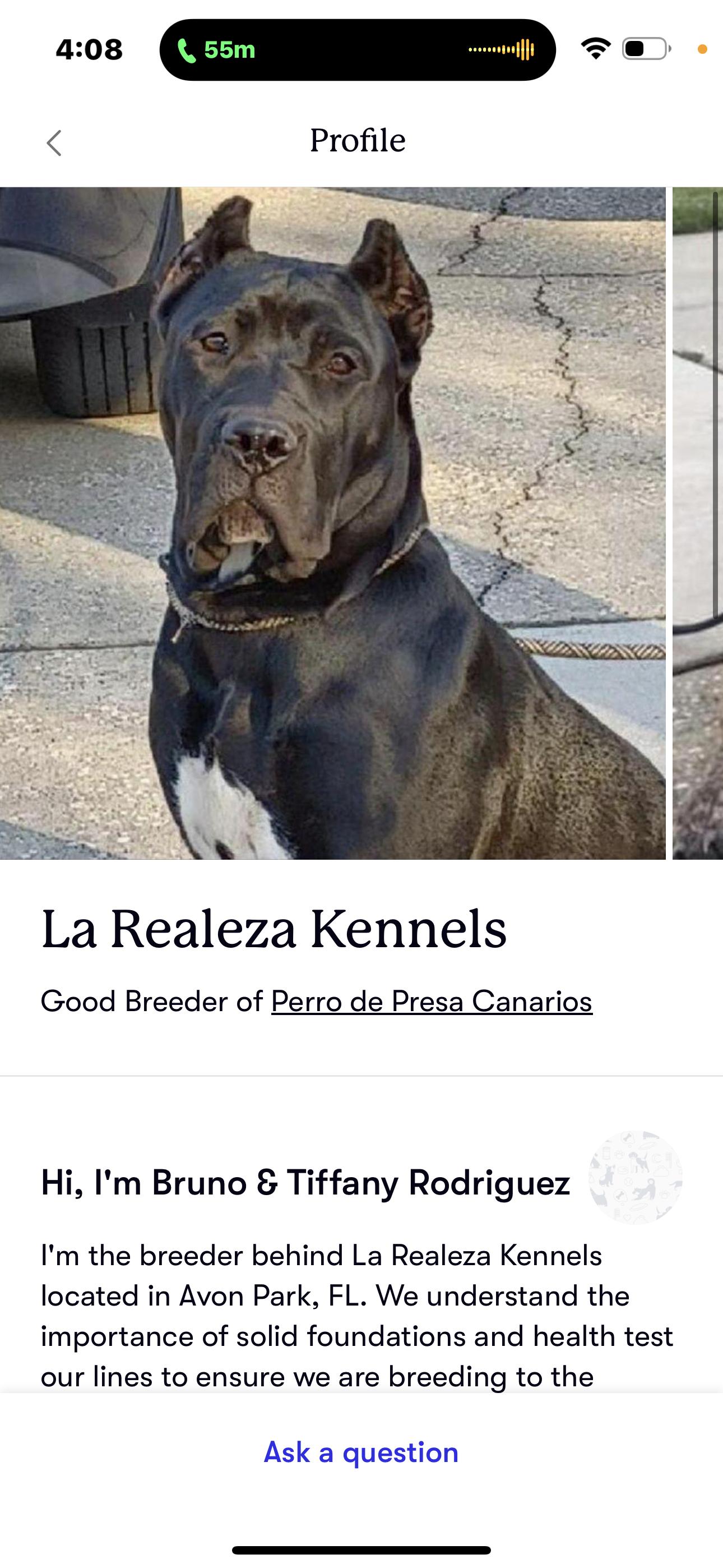 I'm Bruno & Tiffany R., the breeder behind La Realeza Kennels located in Orlando, FL. We understand the importance of solid foundations and health test our lines to ensure we are breeding to the standards you expect. We are dedicated to raising the bar for thoughtful breeding with optimal health in mind. We do our best to produce puppies that have the best chance at living long, happy, and healthy lives as your best friend!