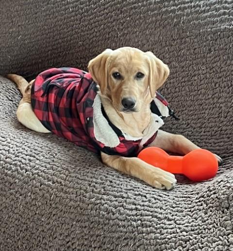 BeeBee is a female Labrador Retriever. Carefully selected as a great representative of her breed, Amy decided to make her part of their program. Amy has passed Good Dog’s screening process, which involved a review of their breeding practices, environment, and the mental and physical health of their dogs.