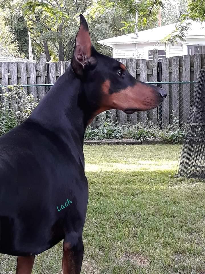 Lach is a male Doberman Pinscher. Carefully selected as a great representative of his breed, Laura decided to make him part of their program. Laura has passed Good Dog’s screening process, which involved a review of their breeding practices, environment, and the mental and physical health of their dogs.