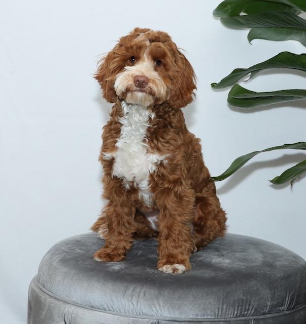 Ruby is a female Australian Labradoodle. Carefully selected as a great representative of her breed, Eileen decided to make her part of their program. Eileen has passed Good Dog’s screening process, which involved a review of their breeding practices, environment, and the mental and physical health of their dogs.