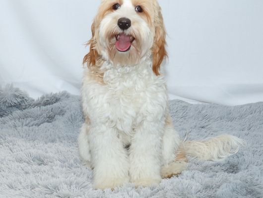 Elvis is a male Australian Labradoodle. Carefully selected as a great representative of his breed, Eileen decided to make him part of their program. Eileen has passed Good Dog’s screening process, which involved a review of their breeding practices, environment, and the mental and physical health of their dogs.