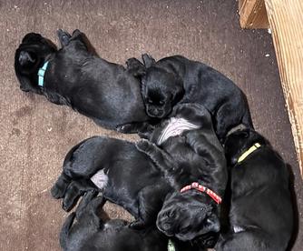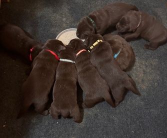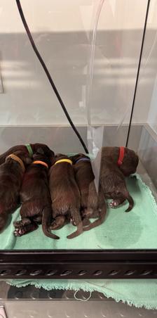 Our puppies include black and chocolate. Colors will vary depending on the parent dogs.