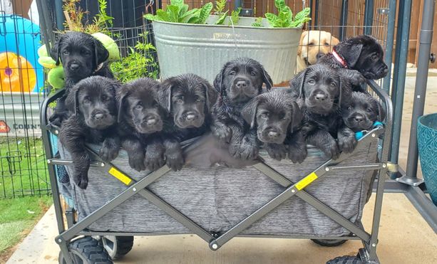 Our puppies include black, chocolate, and yellow. Colors will vary depending on the parent dogs.