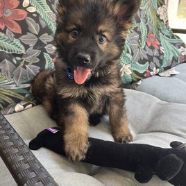 We got our sweet boy Onix (Koda) from Marissa and could not have asked for a better experience!! Marissa has a wealth of knowledge about German Shepherds and she was more than willing to share it with us. It was our first time using Good Dog and we had a million questions. She was quick to respond and thorough in her responses. We received weekly updates, pictures, and videos, which really helped us feel bonded long before we brought our puppy home. Marissa asked all the right questions to ensure a good fit for our family, knowing we have young kids and other pets in the home. The time and effort she put into placement was a testament to how much she cares about her puppies. Onix has a great temperament and has seamlessly fit into our family, it is a perfect match! I highly recommend Marrisa, she was a pleasure to work with and made the process a breeze!