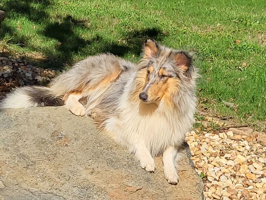 Legand Blue is a gorgeous dog! He loves to play, cuddle, and give a bunch of kisses! His favorite thing to do is run around the yard playing with our 3 boys and his Collie "siblings".