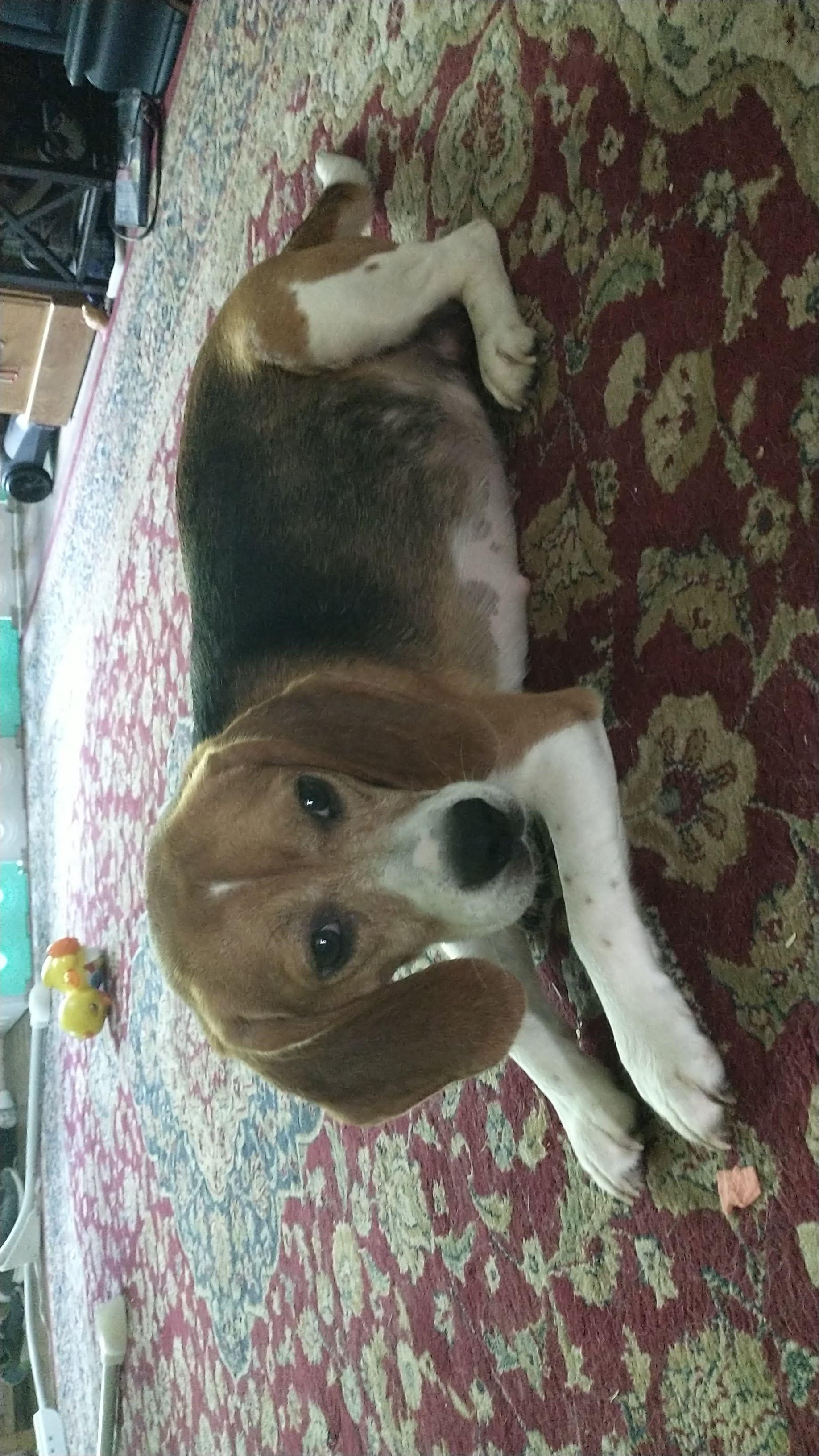 Ginny is a female Beagle. Carefully selected as a great representative of her breed, Lacy decided to make her part of their program. Lacy has passed Good Dog’s screening process, which involved a review of their breeding practices, environment, and the mental and physical health of their dogs.