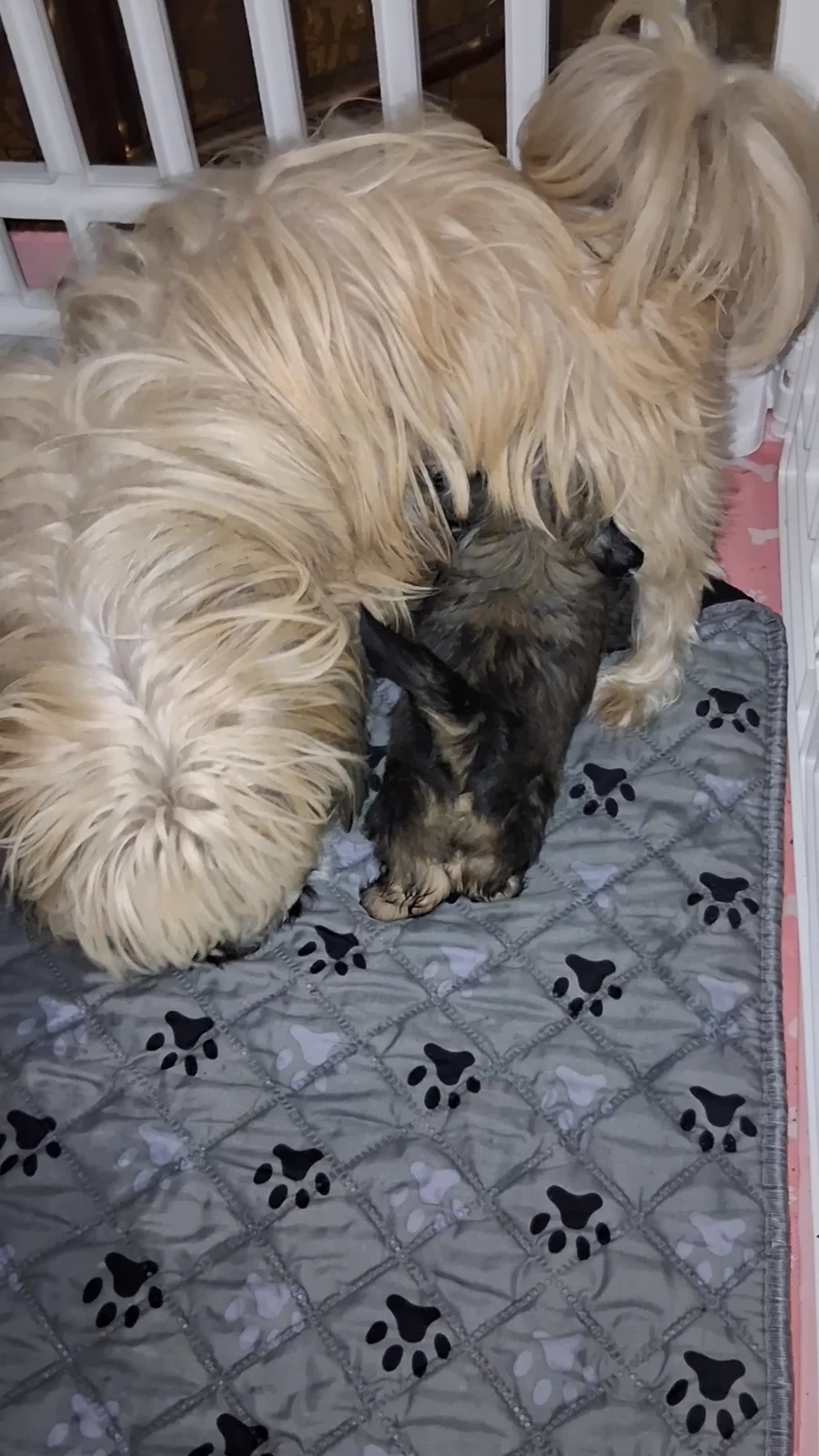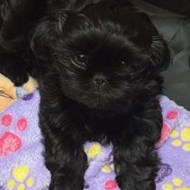 She is a beautiful, solid black CKC registered female who, at 2 years old, is pregnant with her first litter. She is a perfect pure-bred Shih Tzu who is so sweet and laid back. She loves to cuddle and receive affection. She is an excellent attentive Mommy and makes healthy pups that will be excellent pets and family members.