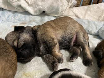 Carey was an amazing breeder to work with! She sent regular updates and pictures of Olive and was very quick to answer any questions we had! She also made sure we had everything we needed when we brought our pup home including food and a toy with her littermates’ scent on it. We decided to rename her Mochi, and we absolutely adore her!