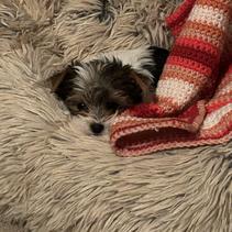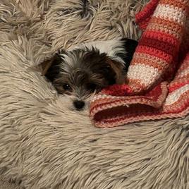 Working with Amber was absolutely amazing. She is such a caring and knowledgeable breeder. From speaking with her I can tell she really loves her dogs and their puppies. I am so thankful to her for bringing Tiny Tim now known as Bentley into my life. He is such a little precious guy. He's the cutest little chocolate Yorkie ever. A brave little guy with tons of personality. She even knit Mr. Bentley this beautiful little blanket in some of my favorite colors. I would definitely recommend her if you are looking for a happy, healthy puppy. 🥰🥰❤️😊