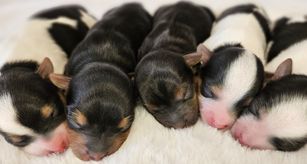 Our puppies include tan and white, chocolate, tan and white, parti, blue and gold, and black and gold. Colors will vary depending on the parent dogs.