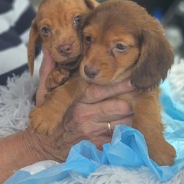 Absolutely Wonderful Experience! I recently brought home a miniature dachshund named Louie from Katie and I couldn’t be happier with the entire experience. From the very beginning, she was professional, kind, and incredibly knowledgeable about the breed. My puppy came home healthy, happy, potty trained and clearly very well-socialized. It’s obvious that a lot of love and care goes into raising these dogs. Katie kept me updated with photos and videos throughout the process, answered all of my questions promptly. My little dachshund has the sweetest personality—playful, affectionate, and already adjusting so well to their new home. I highly recommend Lady Margery’s Dachshunds to anyone looking for a well-bred, well-cared-for pup. This has been such a joyful and seamless experience, and I’m so grateful to have found them!