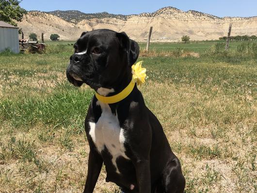 Maylee is a female Boxer. Carefully selected as a great representative of her breed, Kara decided to make her part of their program. Kara has passed Good Dog’s screening process, which involved a review of their breeding practices, environment, and the mental and physical health of their dogs.