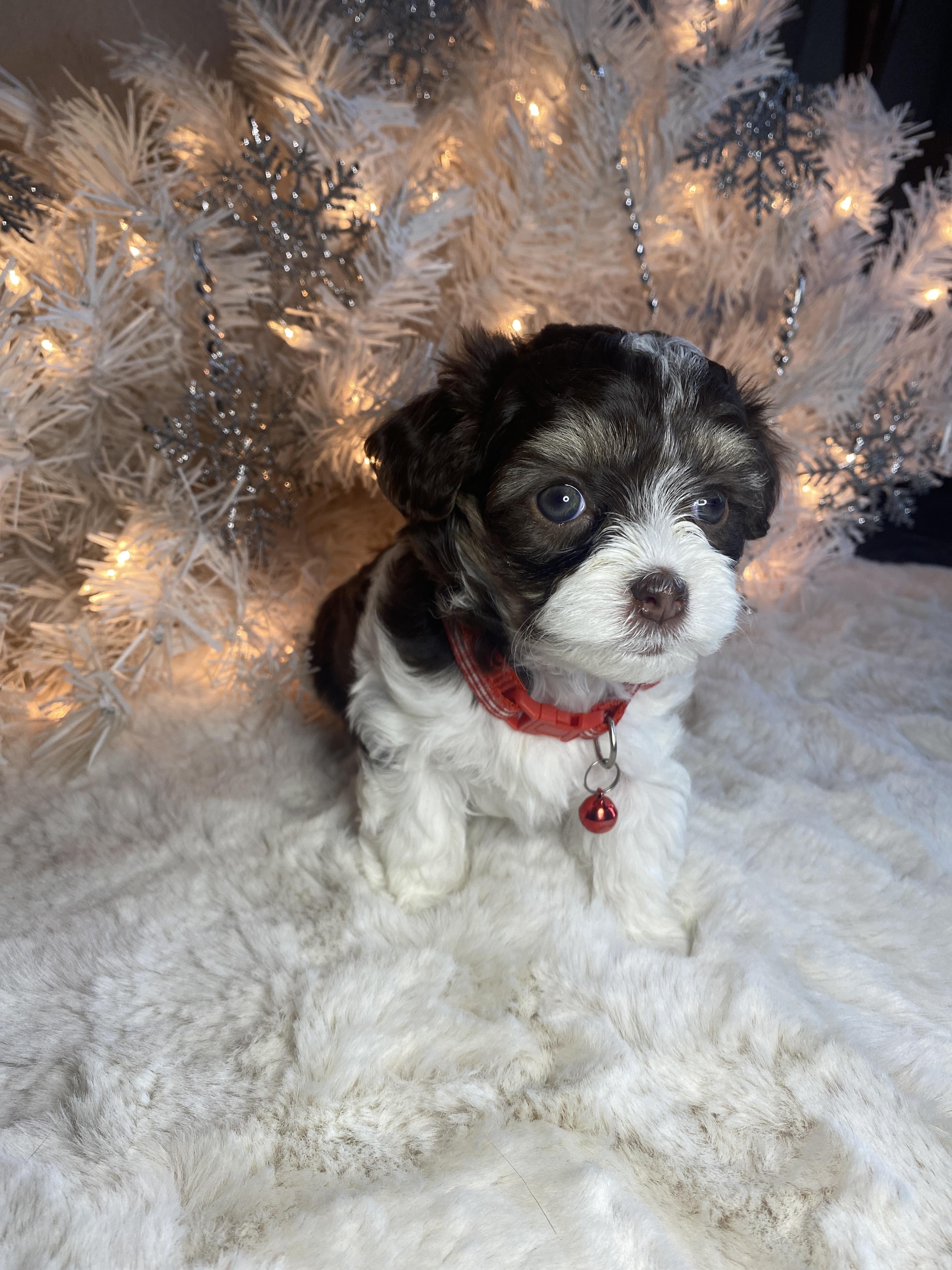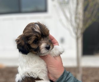 Boxer puppies include fawn, brindle, and white. Havanese puppies include black and white, red, chocolate, and black and silver. Colors will vary depending on the parent dogs.