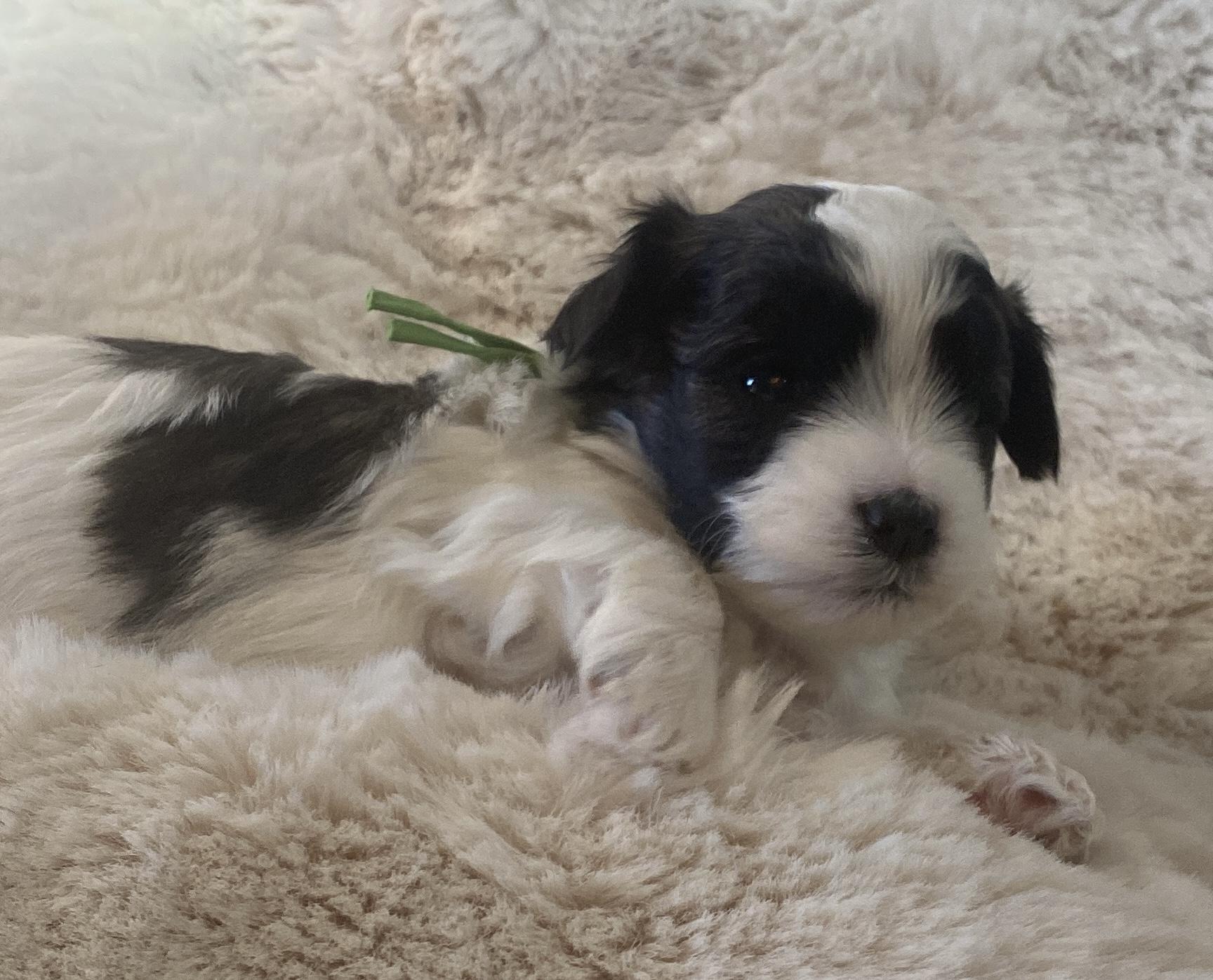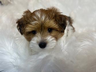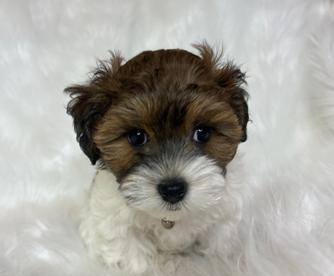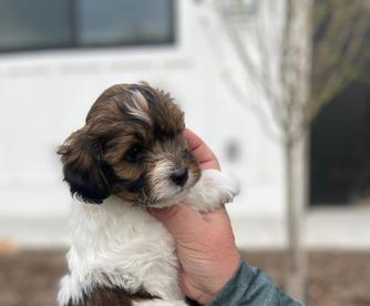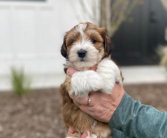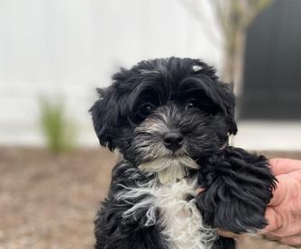 Our Boxer puppies include fawn, brindle, and white. Havanese puppies include black and white, red, chocolate, and black and silver. Colors will vary depending on the parent dogs.