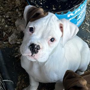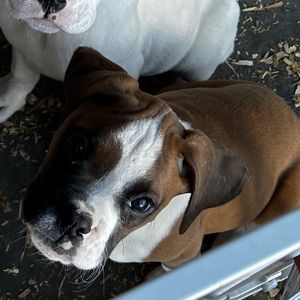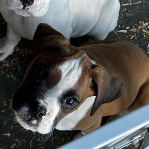 Puppy puppy puppy! Here are our beautiful Akc Boxers! Ready for their new homes and forever families. Between adorable snuggles and eagerness to learn these pups are on their way to being an excellent addition to your family! Message for videos!