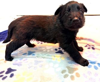 German Shepherd puppies have stock coats. Working Dog Cross puppies have smooth coats. Coat types may vary depending on the parent dogs.