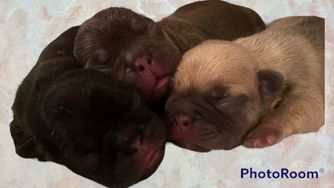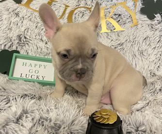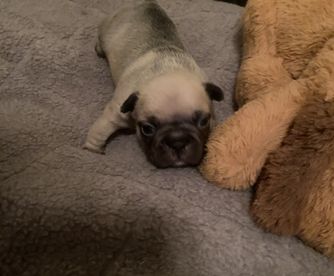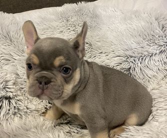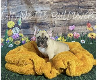 Our Boxer puppies include fawn and brindle. Bulldog puppies include lilac tri-color, chocolate tri-color, blue tri-color, black tri-color, fawn, red and white, and fawn brindle and white. French Bulldog puppies include cream, fawn, tricolors, blue fawn, black and white, blue, and black and tan. Colors will vary depending on the parent dogs.