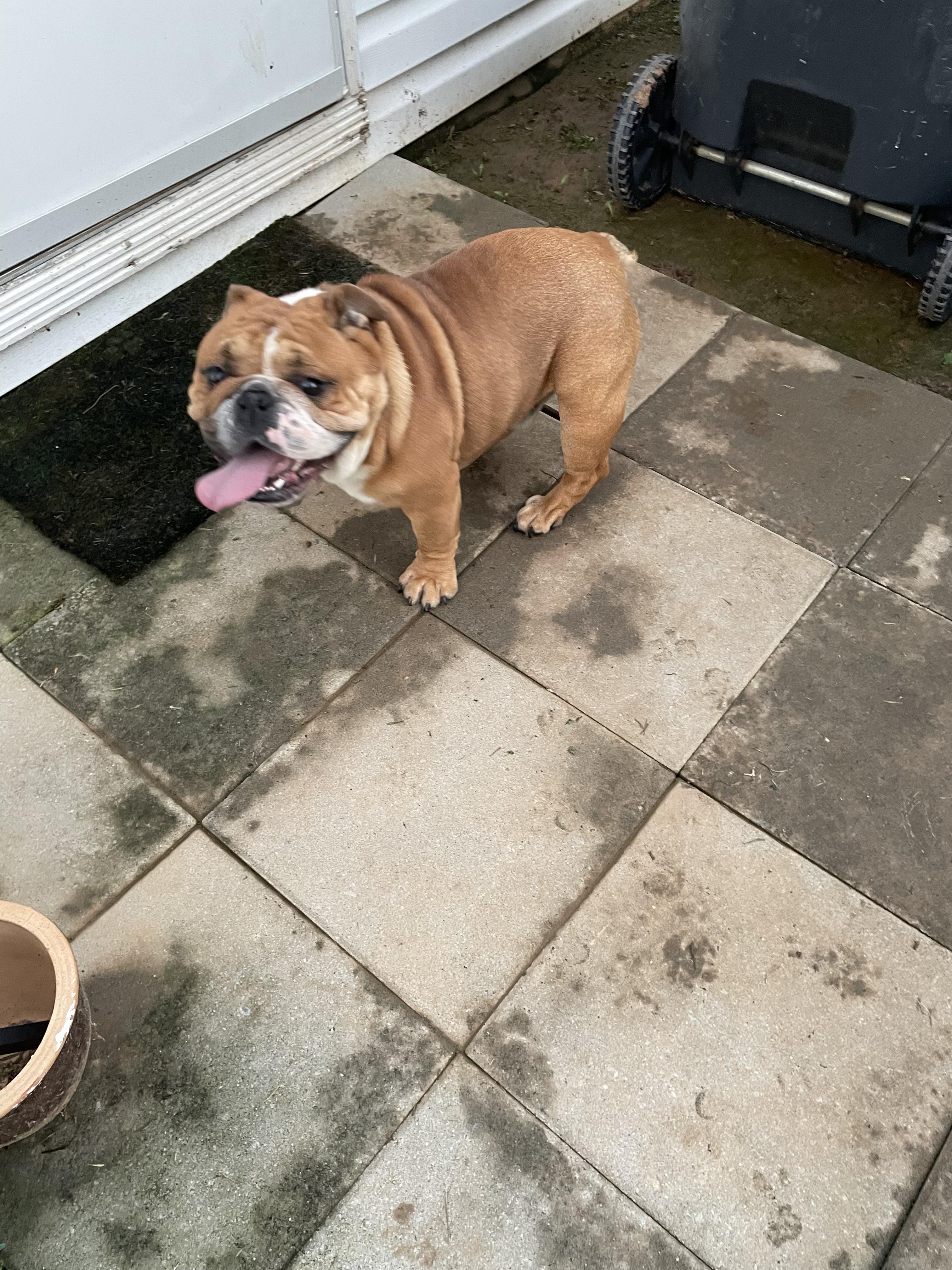 Hazel is a female Bulldog. Carefully selected as a great representative of her breed, Arika decided to make her part of their program. Arika has passed Good Dog’s screening process, which involved a review of their breeding practices, environment, and the mental and physical health of their dogs.