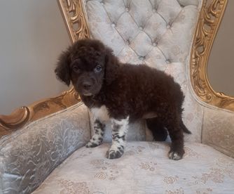 I'm Olga O., the breeder behind Lagotto Illinois located in North Barrington, IL. The Lagotto is an extraordinary dog breed from the Romagna region of Italy. They are qualified as hunting dogs and water retrievers. The lagotto breed is an ancient breed which has existed for over 1000 years. These dogs are very cute and special dogs, perfect for any family. These dogs love water, and would be more than greatful to play all day. We have 12 acres of land, which is a great play area for our dogs. Every day we take them out to play on a field, where they swim and run about. We often take them fishing, sometimes they cruise along on our boat, which also leaves us no choice but to give them some of our fish! Our dogs spend about 4-5 hours outside every day. They get the best food, which is a combination of organic raw meat with royale canin dry food.