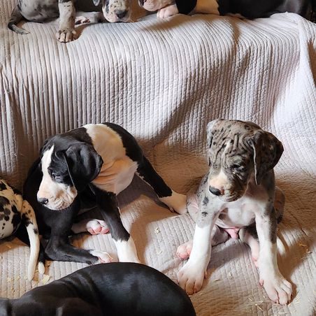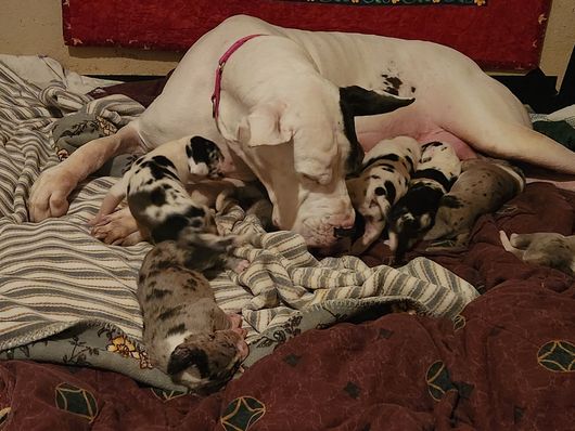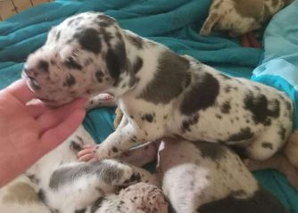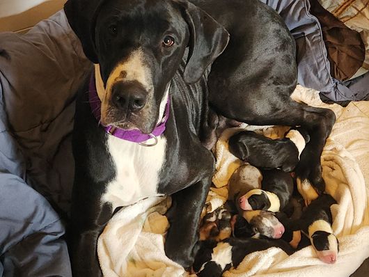 I don’t even know where to start with a review here. Renee was incredible to work with and delivered me a giant bundle of cuddles, joy, and of course teeth to chew on everything. :) She literally went completely out of her way to make my day and make the transition process so easy. I cannot express enough how much I appreciate her and all she’s given me. It’s only been two weeks since we met up and I picked up my new ball of fur (and teeth) and I am compelled to keep in touch with her almost daily just to let her know how the dog is doing. If you’re in the market for a Dane (and why wouldn’t you be?) contact Renee. She’s honestly the best breeder I’ve ever worked with. Hands down.
