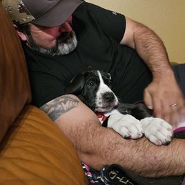 We had an absolutely fantastic experience working with Renee from Lakaya Danes to bring home our sweet girl, Large Marge! From the very first inquiry through Good Dog, everything was seamless and professional—Renee was incredibly communicative and made the entire process feel effortless and exciting.Picking up Large Marge in person was a highlight; the facility was spotless, well-organized, and clearly run with so much love and care for the dogs. Renee herself is a true expert and a joy to work with—she answered all our questions patiently and made us feel confident as first-time Great Dane owners.We were blown away by the thoughtful puppy starter package that came with everything we needed to get started: high-quality food, a cozy blanket with the litter's scent, a sturdy leash, collar, and more. It really showed how much Renee invests in setting her puppies (and their new families) up for success.Even after we brought Large Marge home, Renee has been amazingly responsive and supportive, offering helpful advice on training, health tips, and everything in between. She's gone above and beyond to ensure we're thriving as a family.We couldn't be happier with our beautiful, healthy puppy—Large Marge has brought so much joy and energy into our home already! If you're considering a Great Dane from Lakaya Danes, do it—you won't regret it. Renee is the best in the business! Five stars all the way!