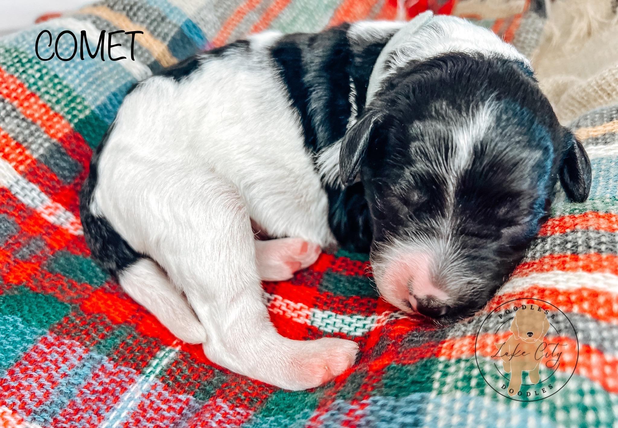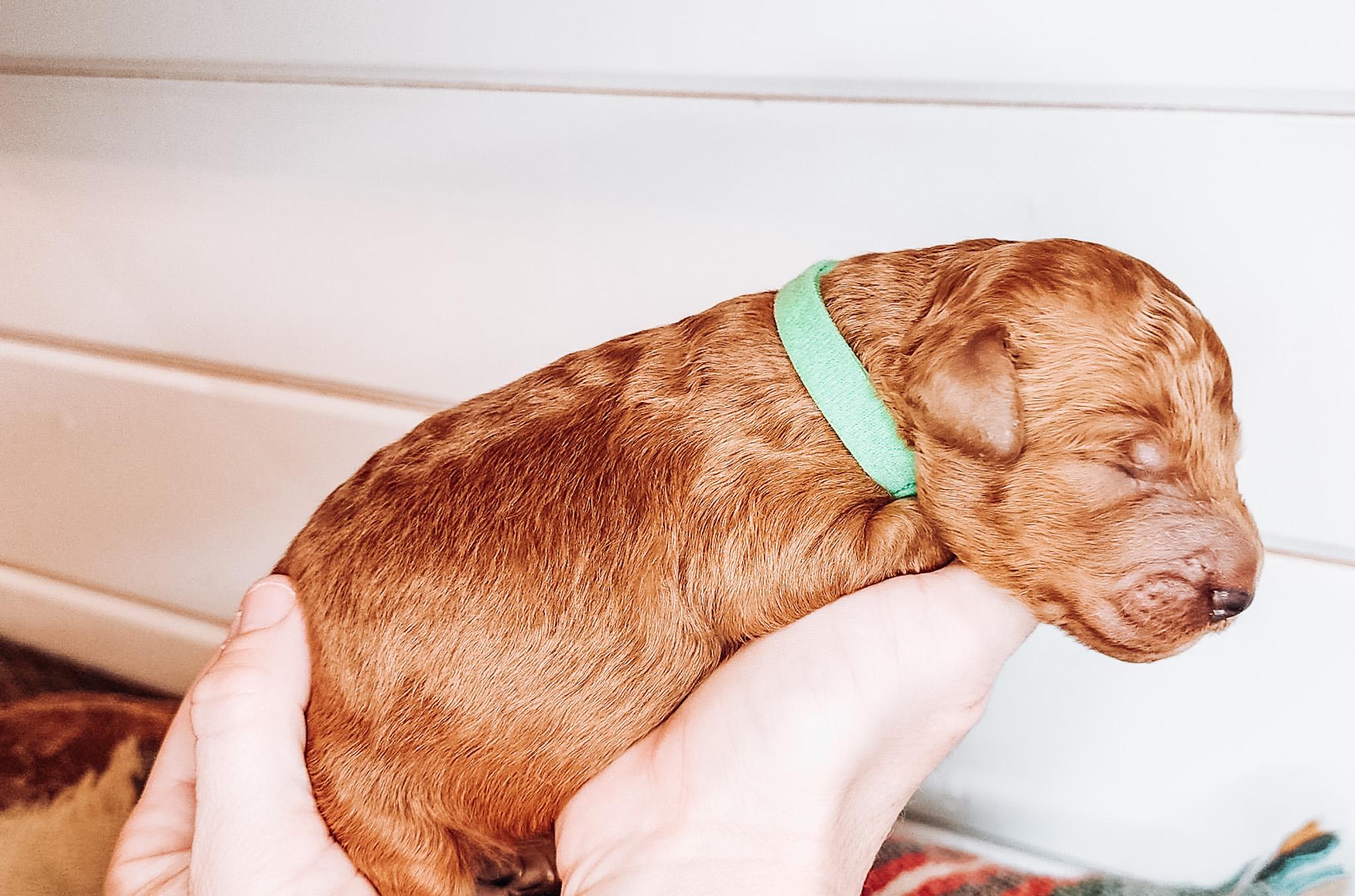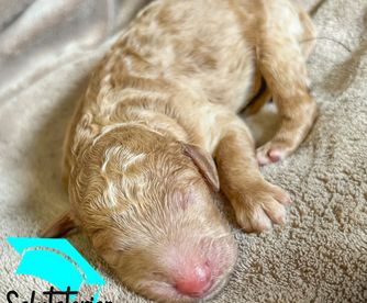 Our Poodle puppies include apricot, red, and parti. Labradoodle puppies include chocolate, black, and tri-color. Colors will vary depending on the parent dogs.