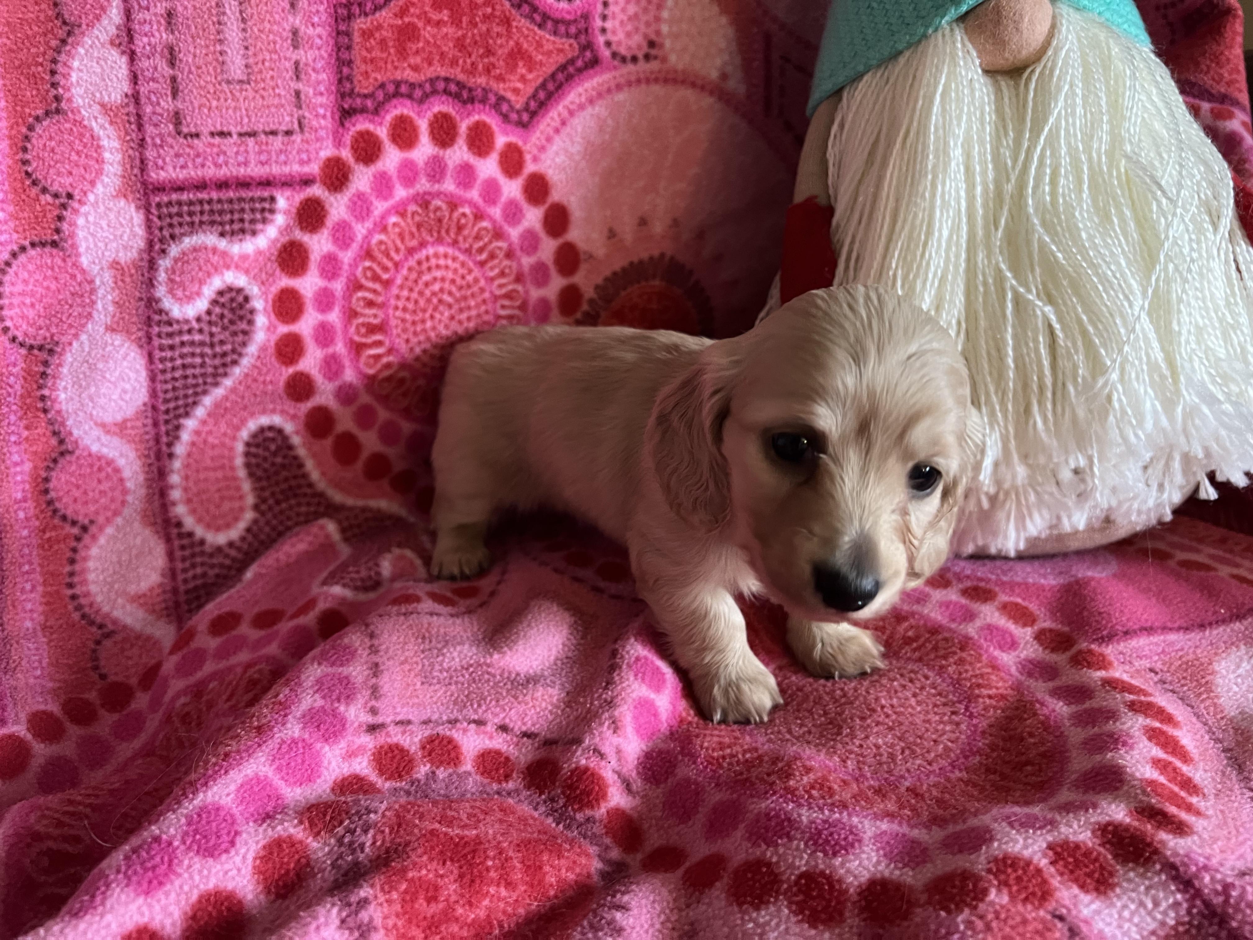 Desa is a female Dachshund. Carefully selected as a great representative of her breed, Ginny decided to make her part of their program. Ginny has passed Good Dog’s screening process, which involved a review of their breeding practices, environment, and the mental and physical health of their dogs.