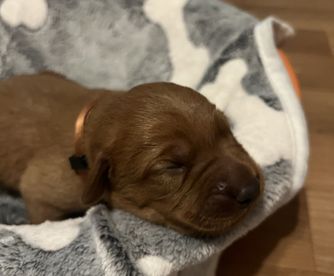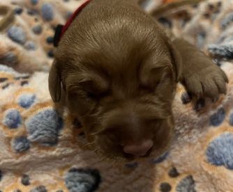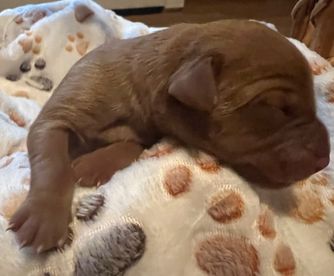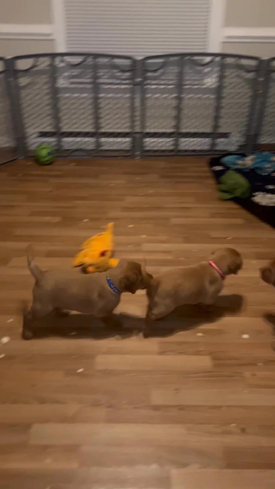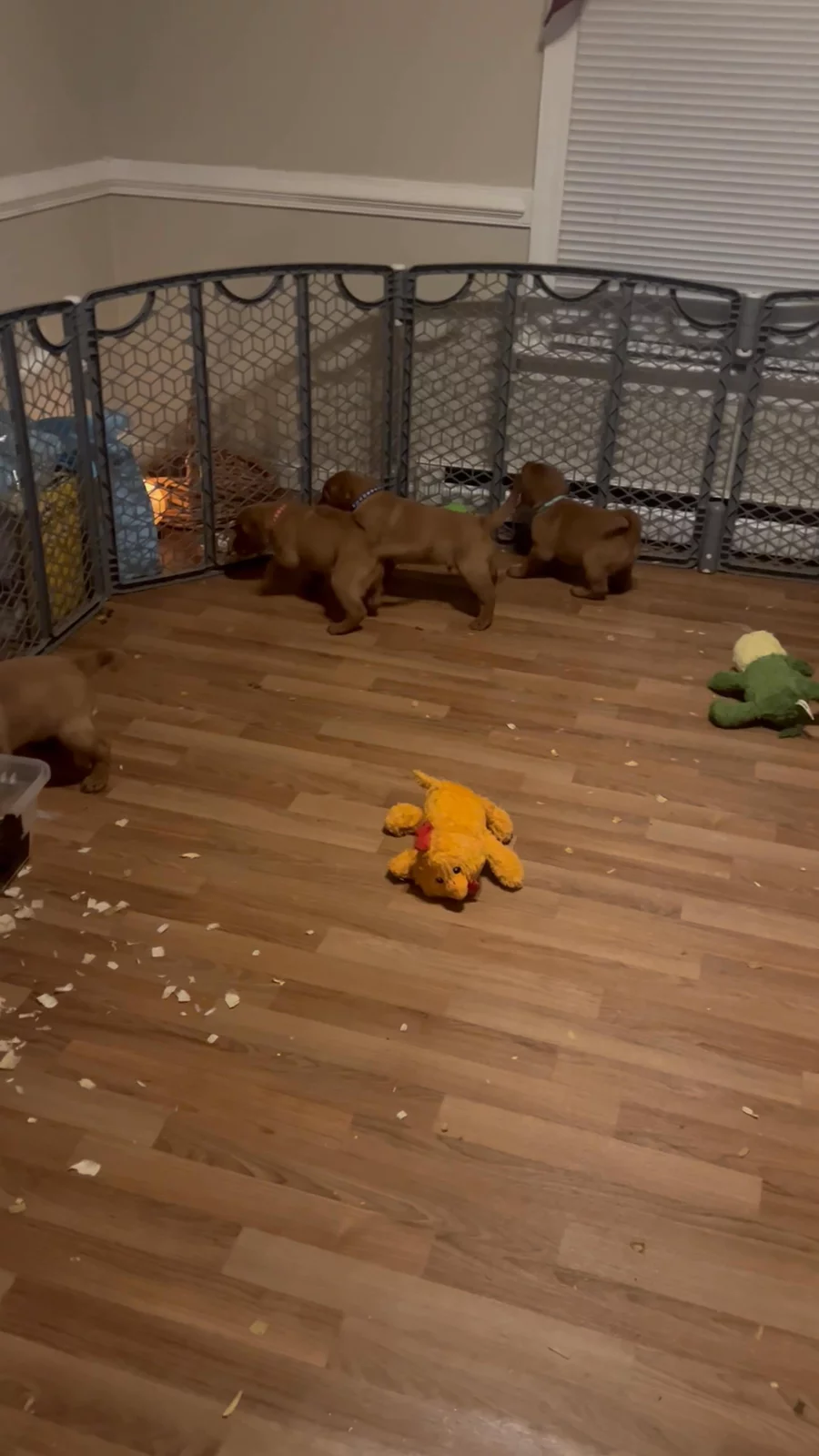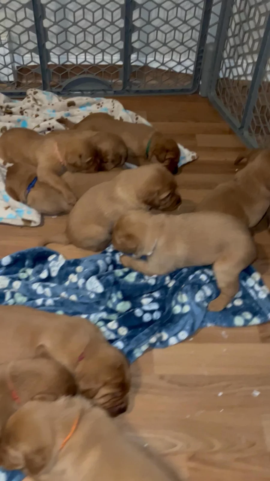 Puppies are 5 weeks old! They are growing fast very actively playing and jumping around and having a great time playing with each other.