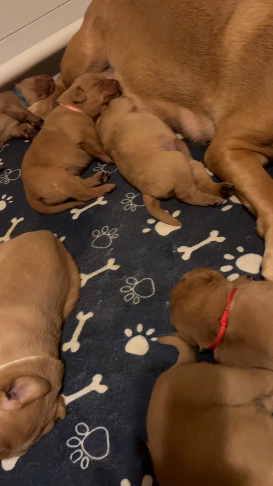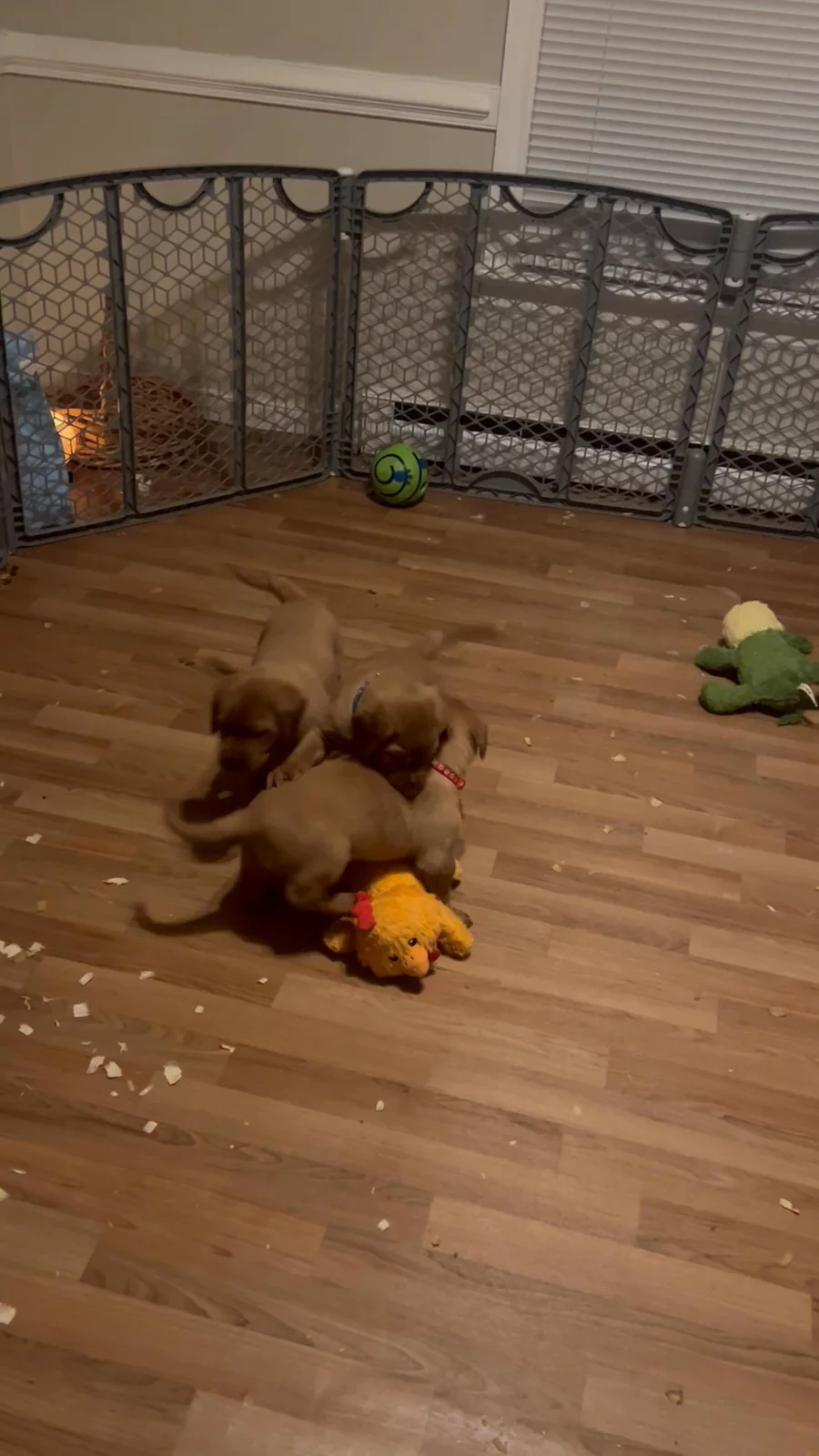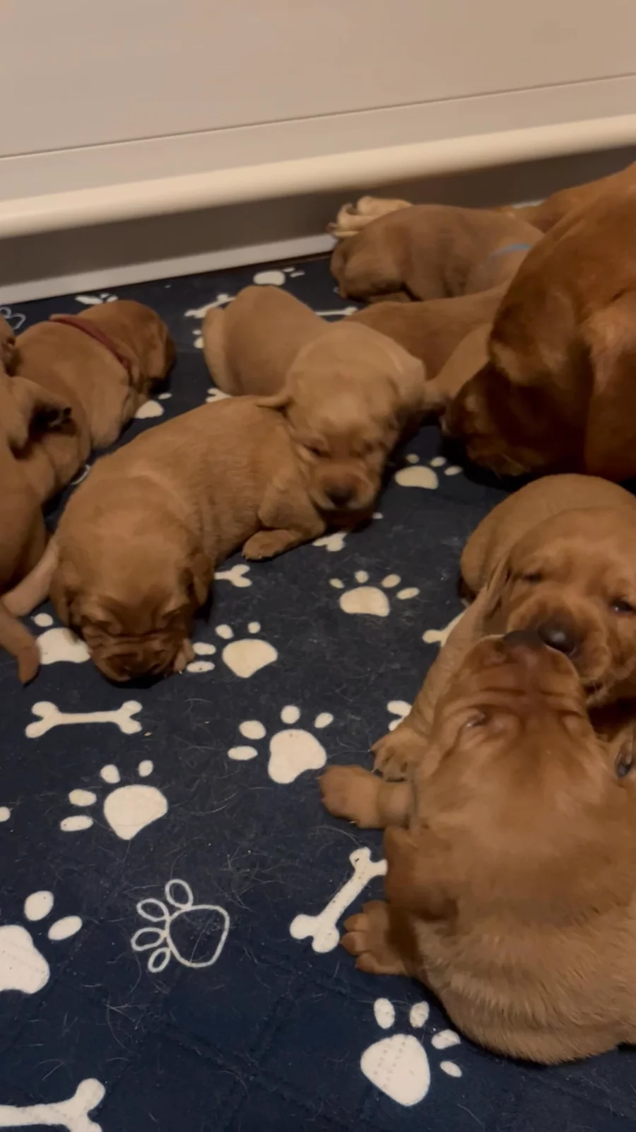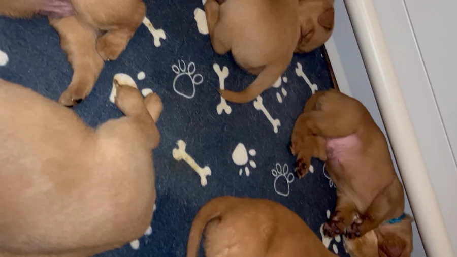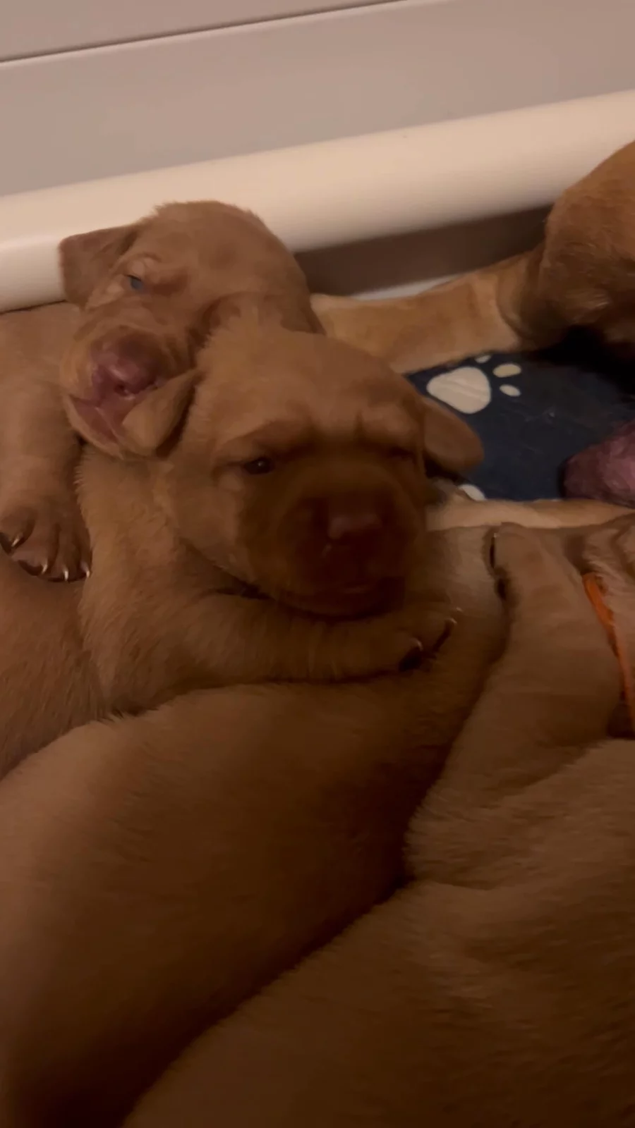 Puppies are 2 weeks old getting busy. Eyes are almost open.