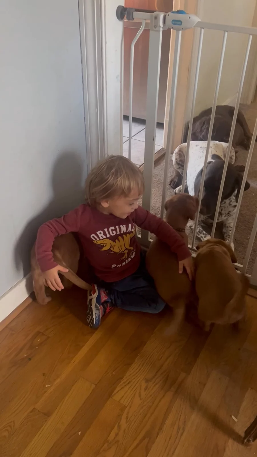 7 weeks old today. My Grandchildren came for a visit and as expected the puppies were fantastic with them . Such good puppies all of them so sweet, kind and playful.