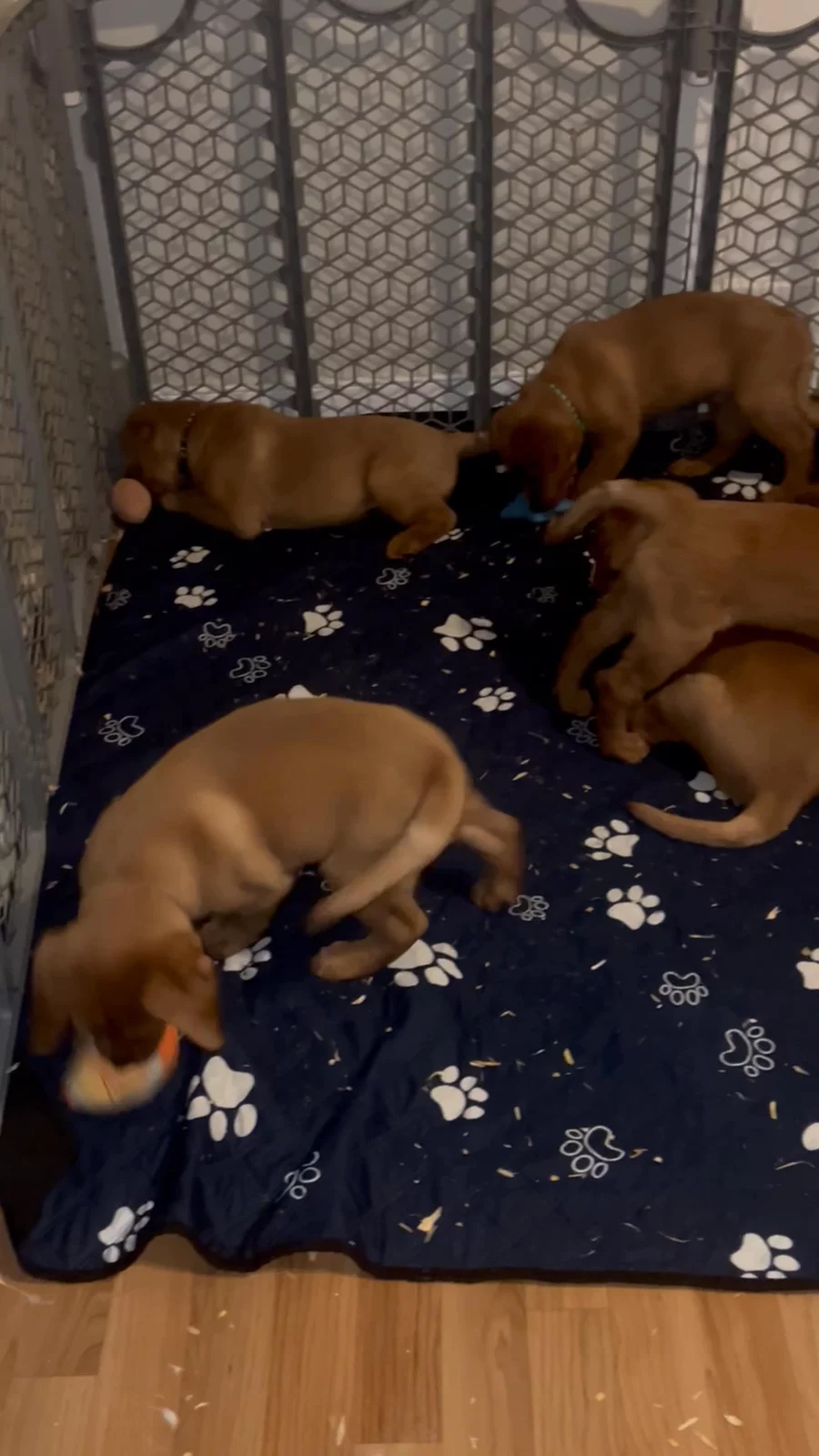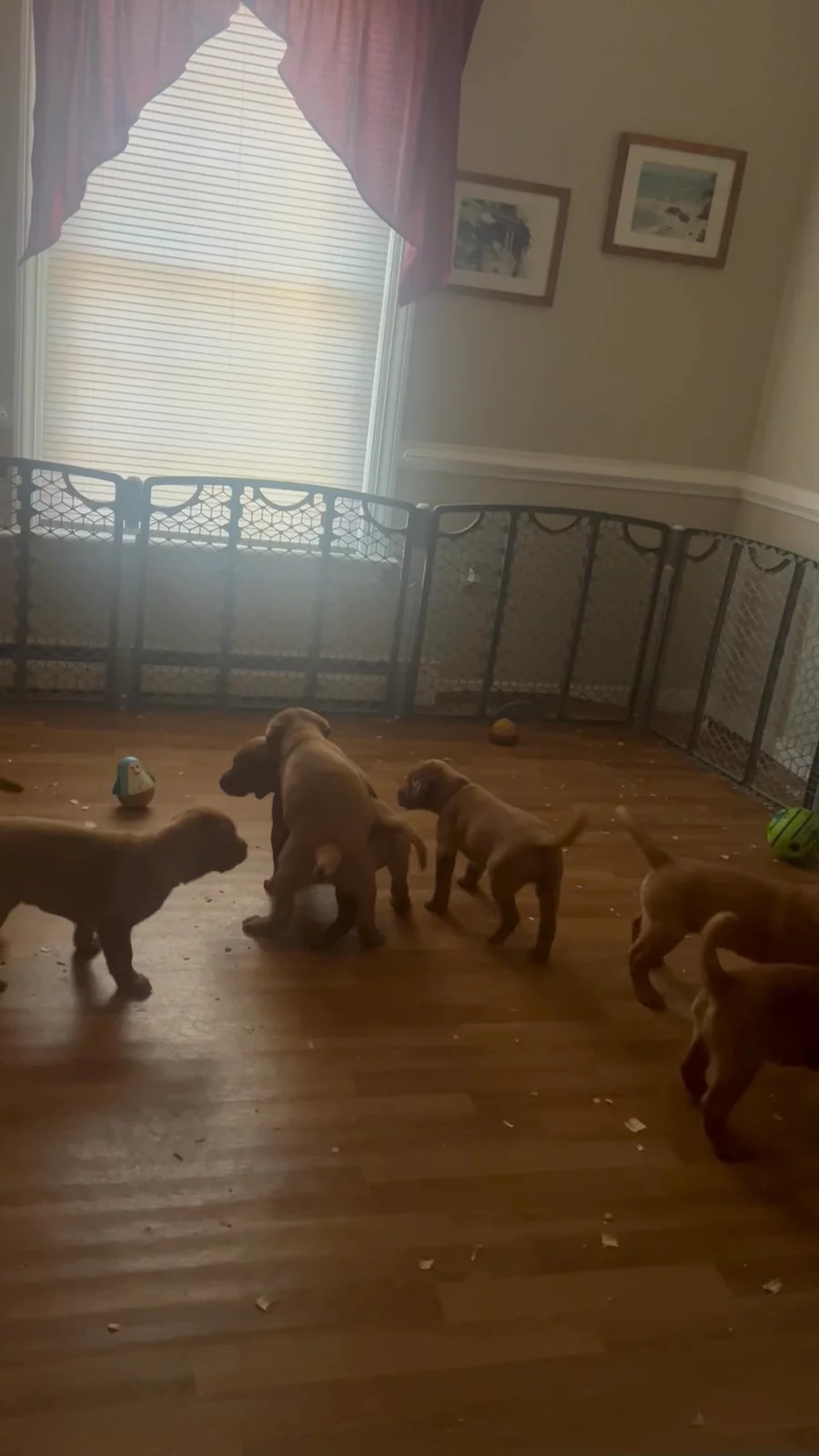 Puppies are enjoying some new toys and enjoying their last week together.