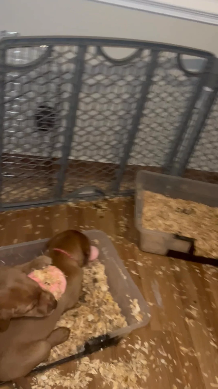 Puppies new club house introducing to crate training that crates are a safe place. Basic training in toilet training. Puppies are so smart, most of the time they go to the bathroom in the bins. They all have their wonderful personalities emerging.