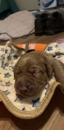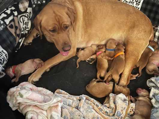 I'm Mara C., the breeder behind Lake Crystal Farms Labradors located in North Chesterfield, VA. We’re so excited to be able to help families experience the longtime loyalty of welcoming a new puppy into their lives! We are dedicated to always providing our buyers and our puppies with a positive experience, which includes remaining committed to responsible practices when it comes to breeding, training, and rehoming our puppies. Our puppies come with AKC paperwork to be registered with the AKC. Both Dam and Sire have some champion bloodlines and sire in this litter has aspects of master hunters or field trials.