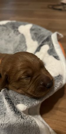 So the puppies are growing up fast ! Eyes are beginning to open. Gaining weight and just had their first dose of wormer !
