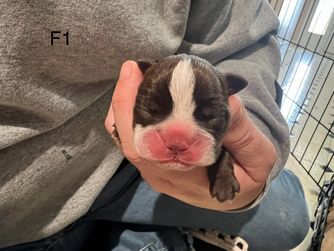 Daisy is our first Boston. We bought her locally and just fell in love. She is super sweet and cuddle and is the most chill of the three we have. She is a great momma as well!!!