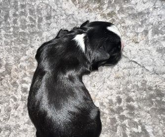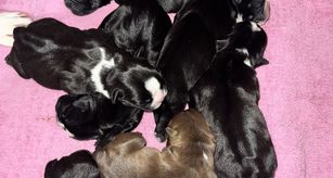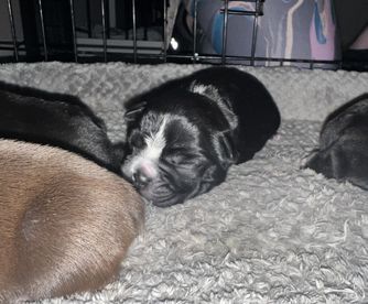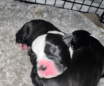 Our puppies are black and white. Colors will vary depending on the parent dogs.
