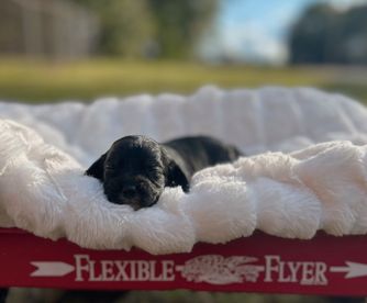 “All puppies leave us Microchipped, Dewormed UTD, Vaccines UTD, a clean bill of health from our vet, a 1 year health guarentee, Limited registration, a puppy pack, as well as we start basic training. ”