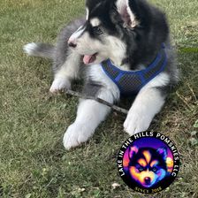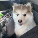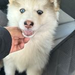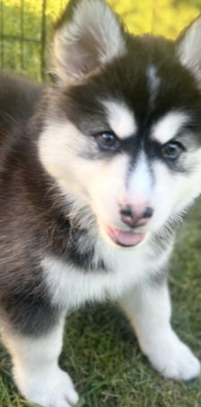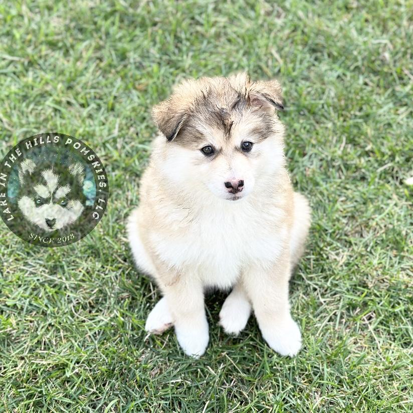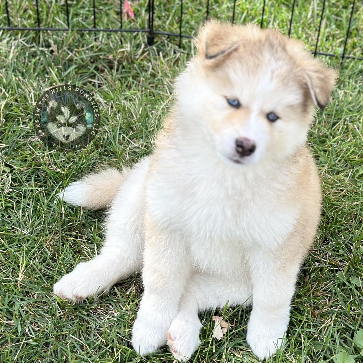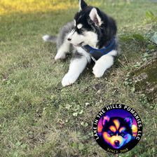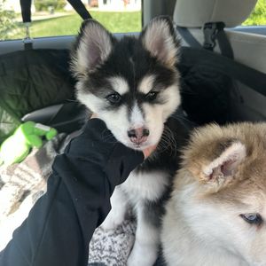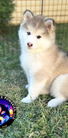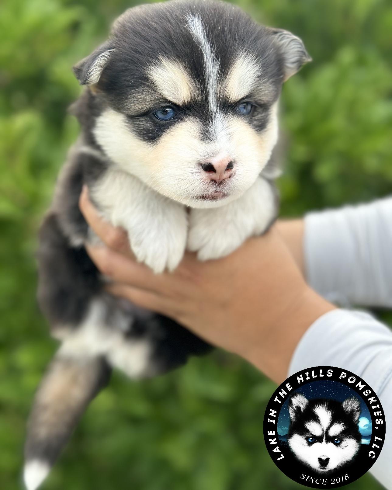 Our sweet boy Luke just turned 8 weeks and is ready for his forever home! He’s charting to be on the bigger side for a Pomsky (around 30–35 lbs full grown), making him the perfect buddy for an active family who loves walks, playtime, and adventures.