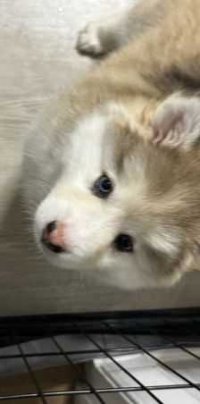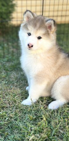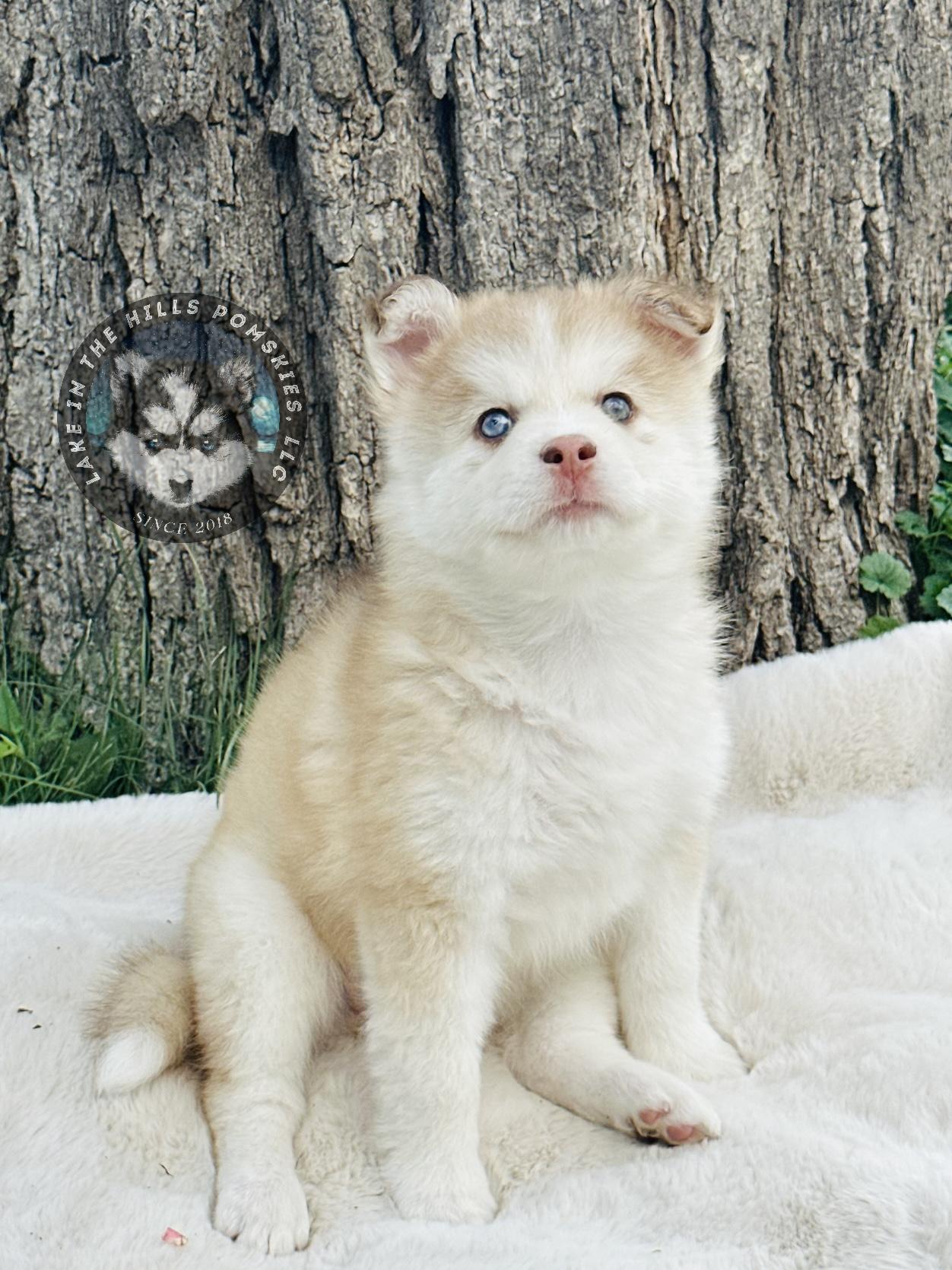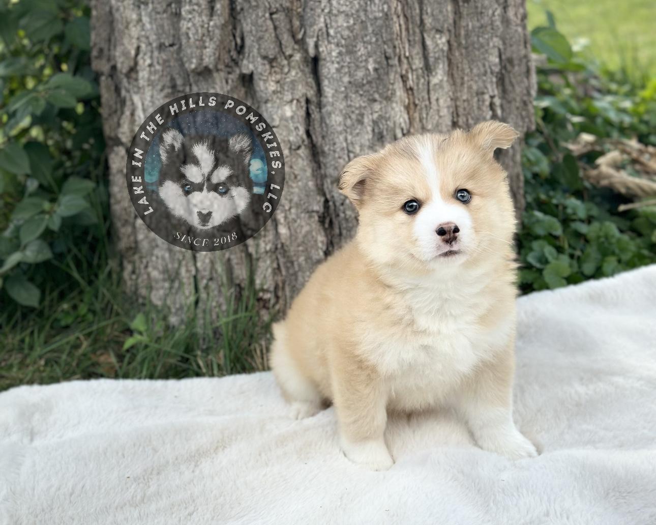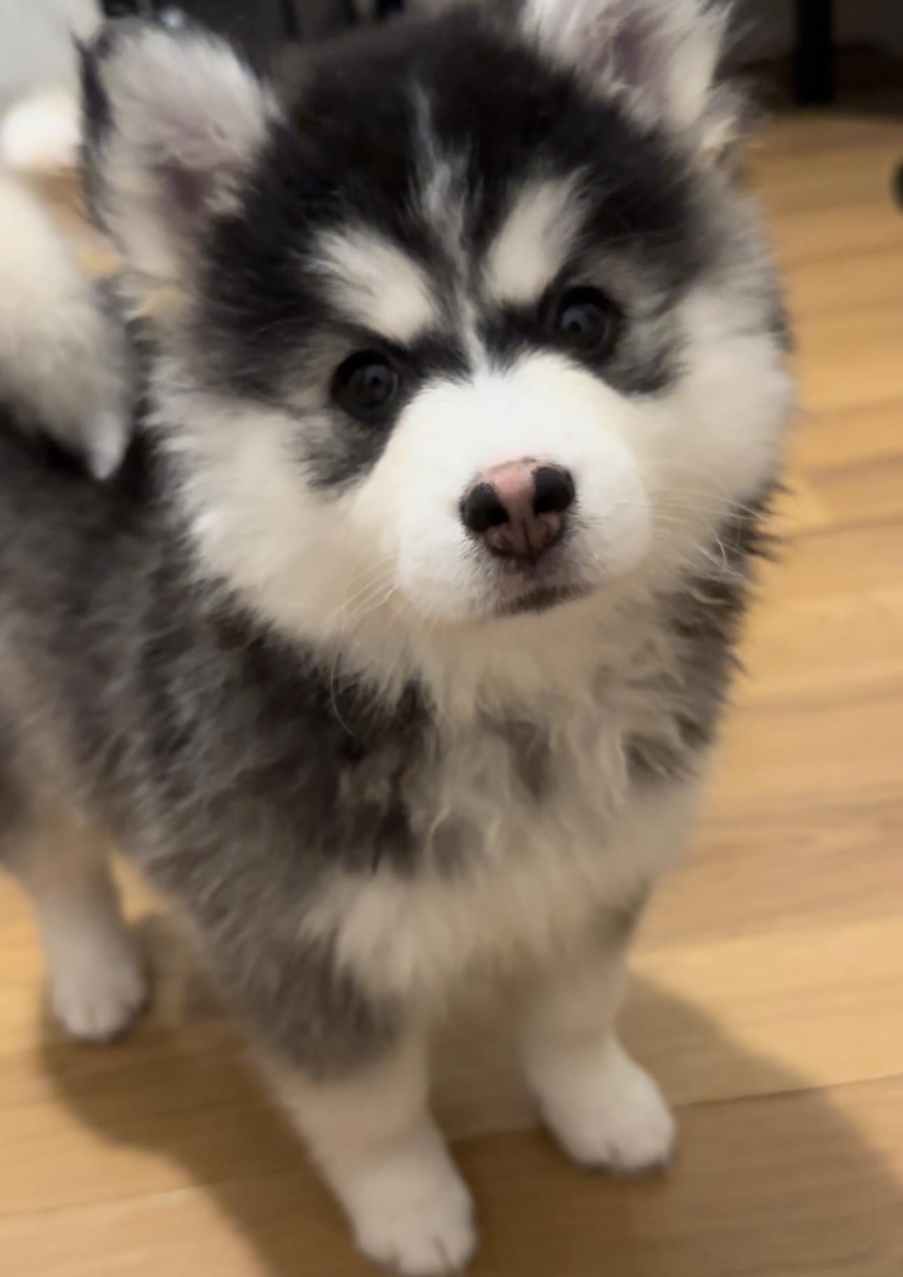 Our sweet boy Luke just turned 8 weeks and is ready for his forever home! He’s charting to be on the bigger side for a Pomsky (around 30–35 lbs full grown), making him the perfect buddy for an active family who loves walks, playtime, and adventures.