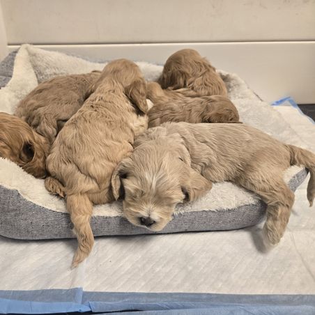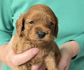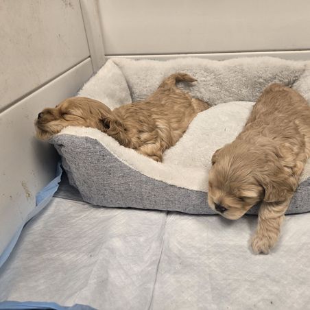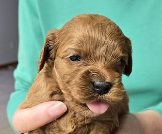Our Cockapoo puppies include red, golden, cream, and buff. Cavapoo puppies include red, cream, and apricot. Colors will vary depending on the parent dogs.