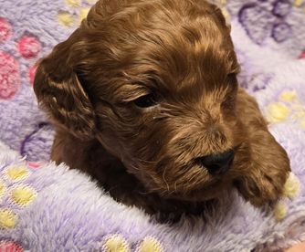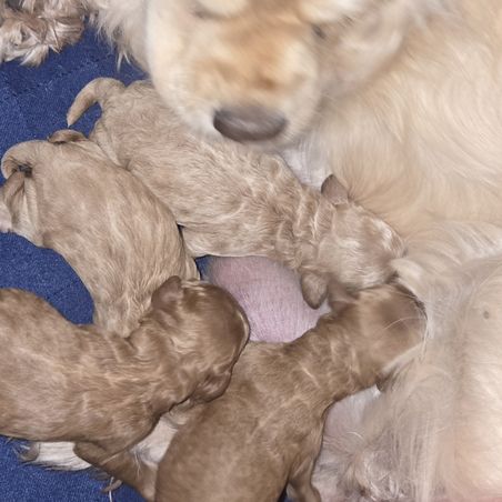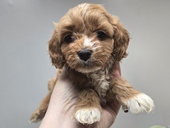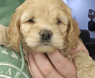 Our Cavapoo puppies include red, cream, and apricot. Cockapoo puppies include red, golden, cream, and buff. Colors will vary depending on the parent dogs.