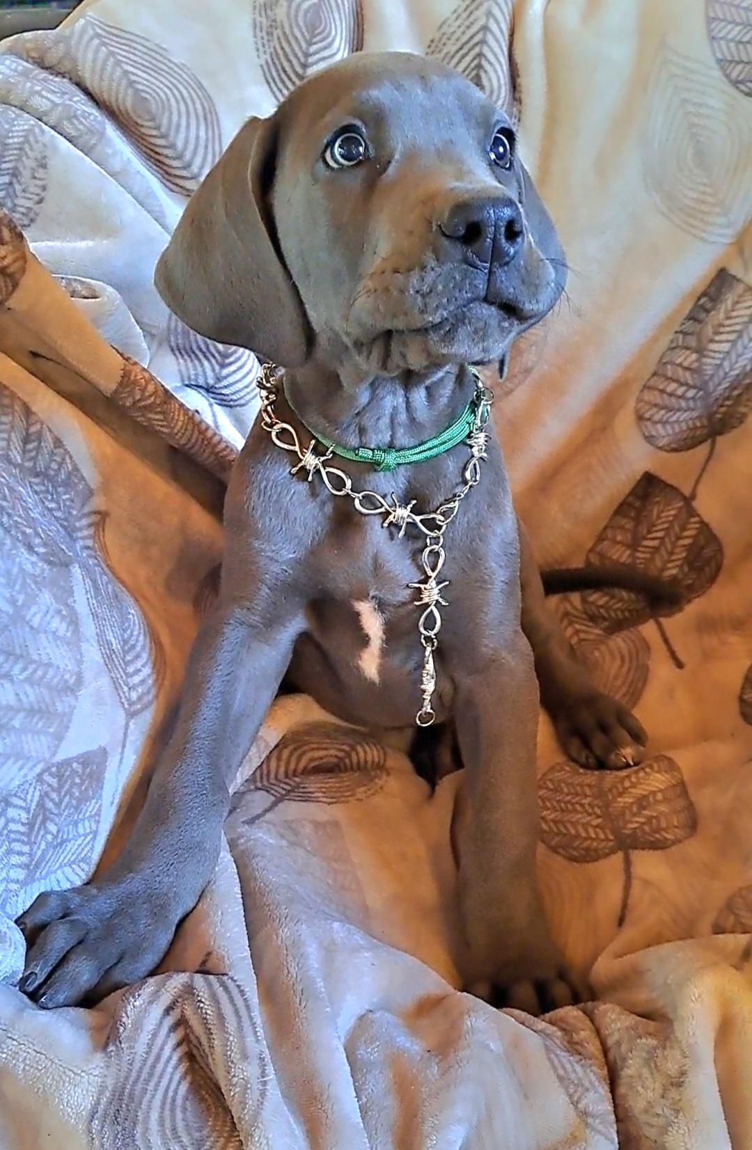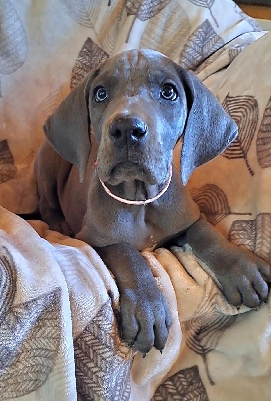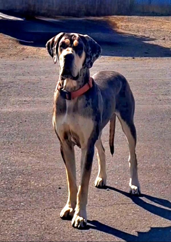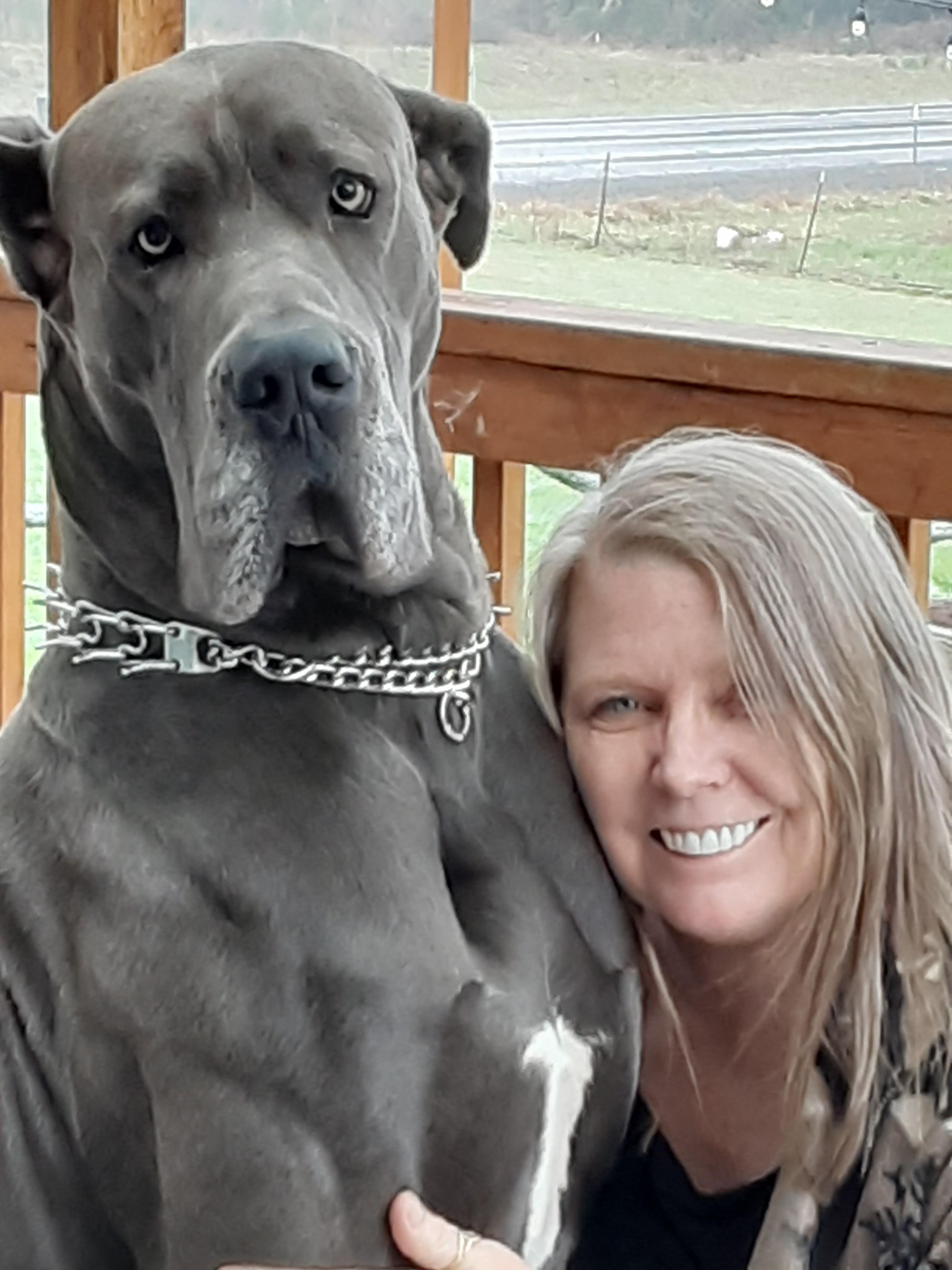Tesla is a female Great Dane. Carefully selected as a great representative of her breed, Katherine decided to make her part of their program. Katherine has passed Good Dog’s screening process, which involved a review of their breeding practices, environment, and the mental and physical health of their dogs.
