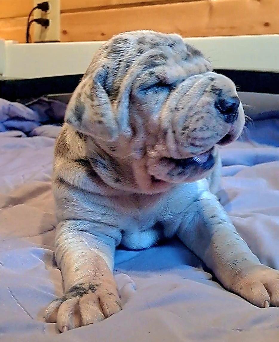 Our puppies include blue, harlequin, merle, and black. Colors will vary depending on the parent dogs.