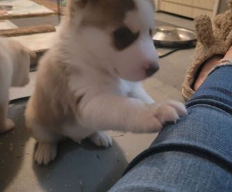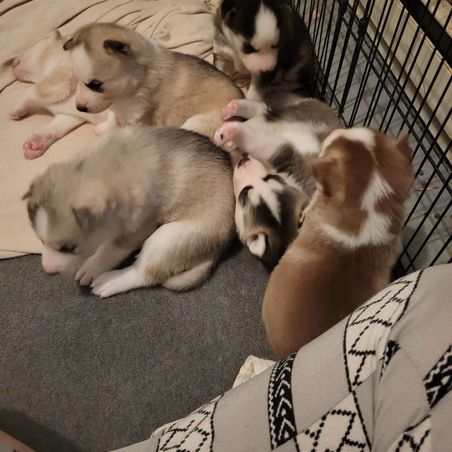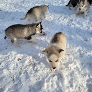 I'm Alison K., the breeder behind Lakeland Huskies located in Dent, MN. We strive to breed our dog to be well mannered, sweet dogs with a level head and a drive. We hope with our pairings that we get all the best traits possible from both the parents and ancestors. To get dogs fit for any active home or a working kennel, as these dogs come from old working sled lines.
