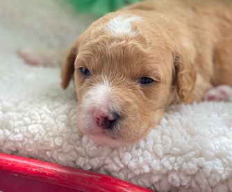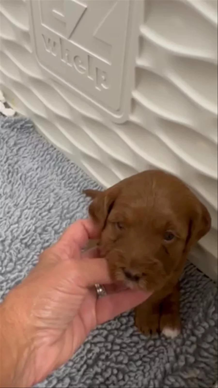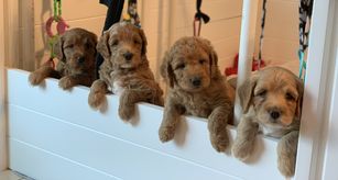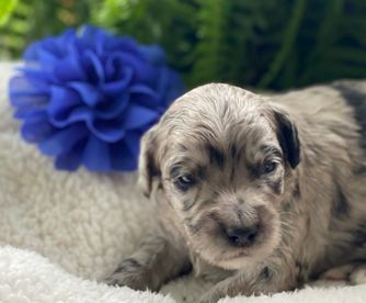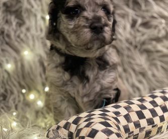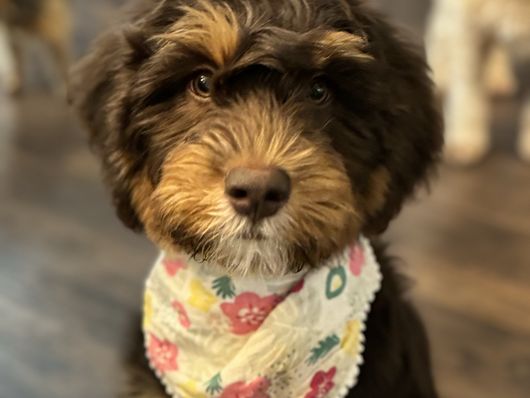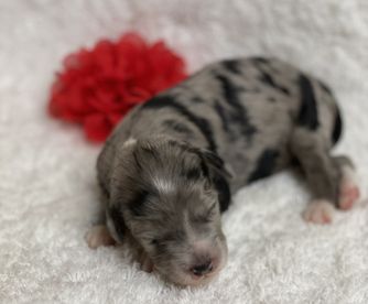From the moment I first messaged Korey about her puppies, she was excellent and very responsive. She flew my puppy out to me on a plane with a flight nanny, and he arrived in perfect health. He was already partially crate trained and potty trained, as well as being familiar with clicker training. I loved how I got weekly updates on my puppy until he was ready to go home, and all of the recommendations that Korey provided to me along the way. My family can’t be happier with our new Aussiedoodle puppy Smokey, formally known as Caterpillar!!