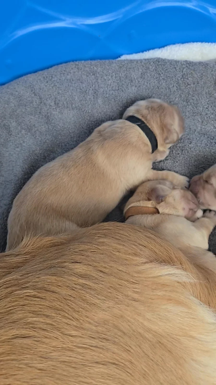 Look at these cute little puppies. Their eyes are opening and learning how to walk. Growing up so fast. 2 weeks and 2 days old