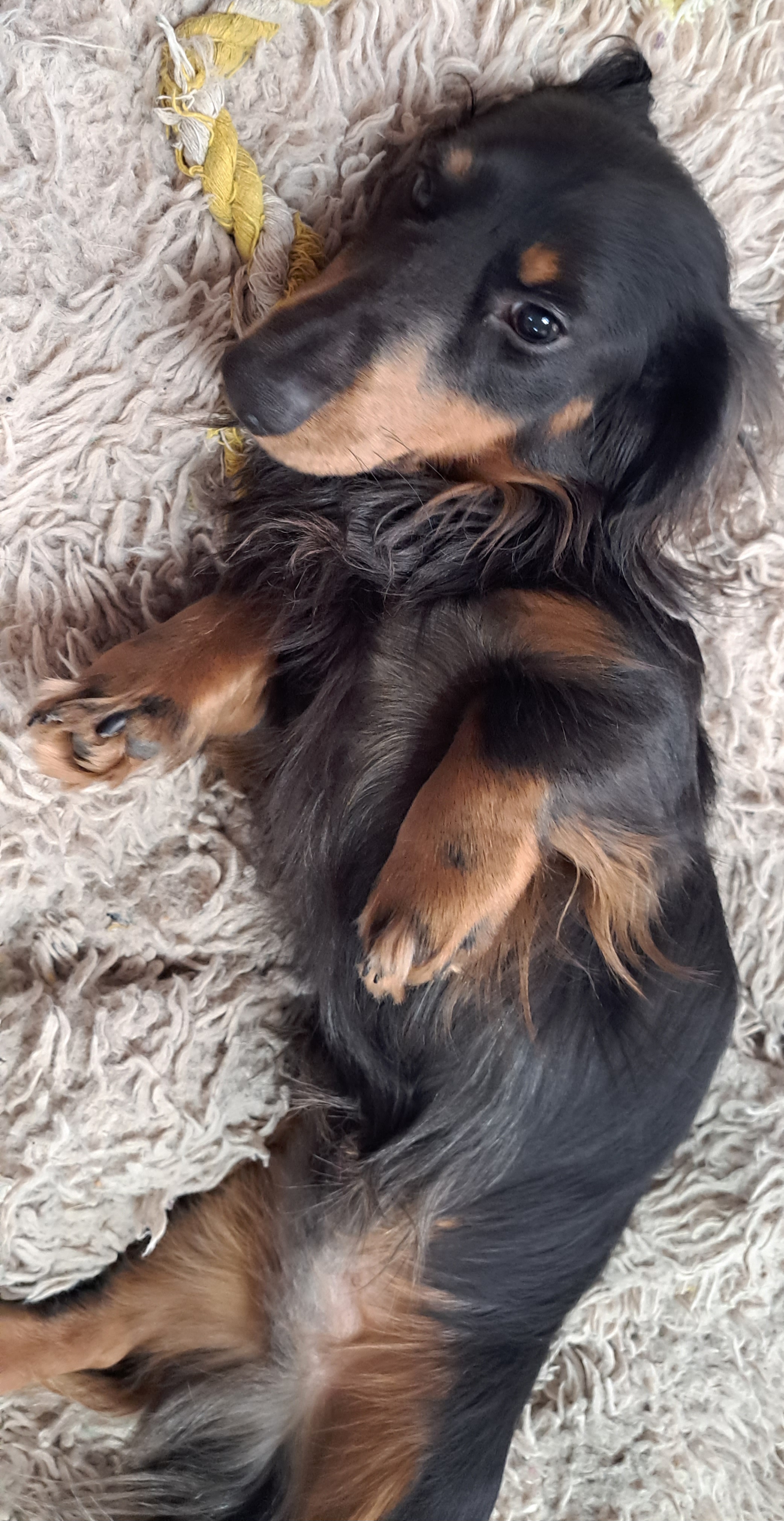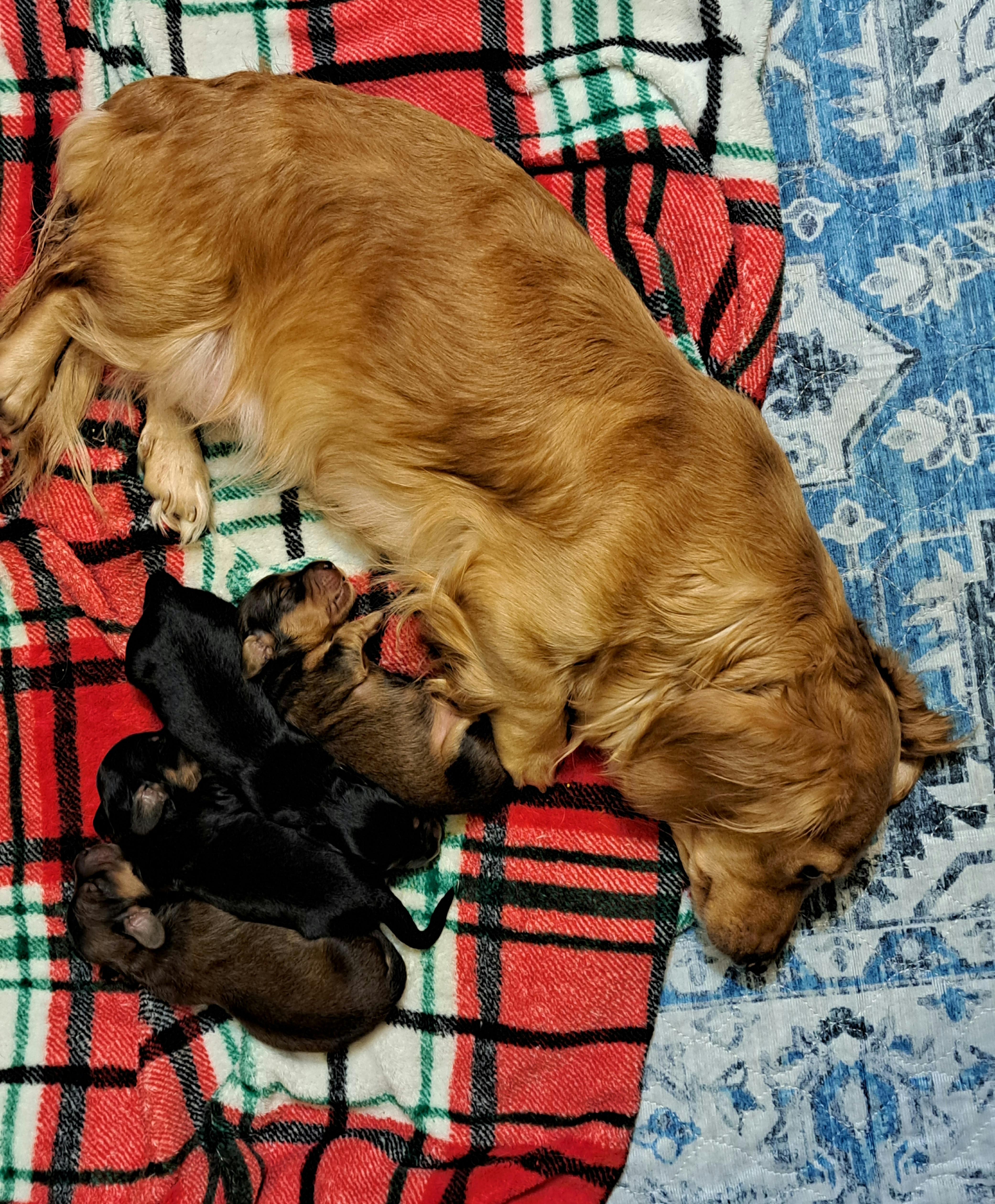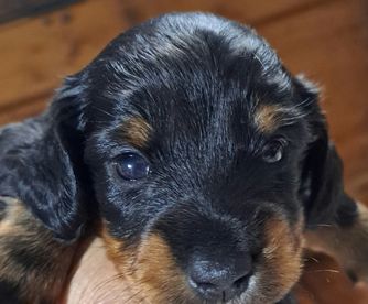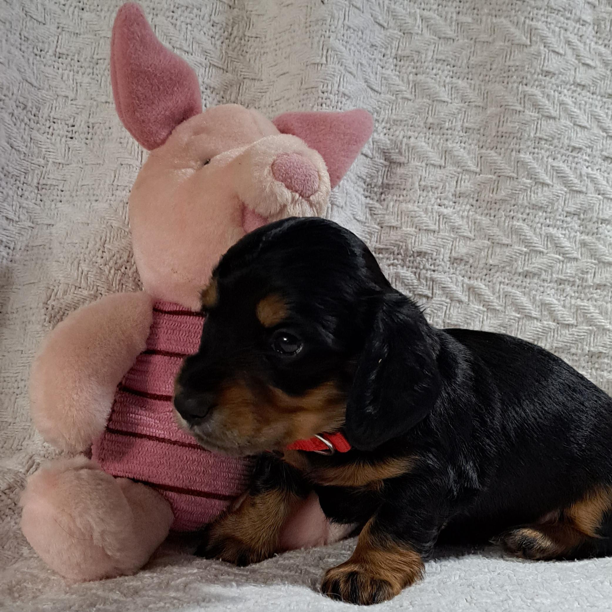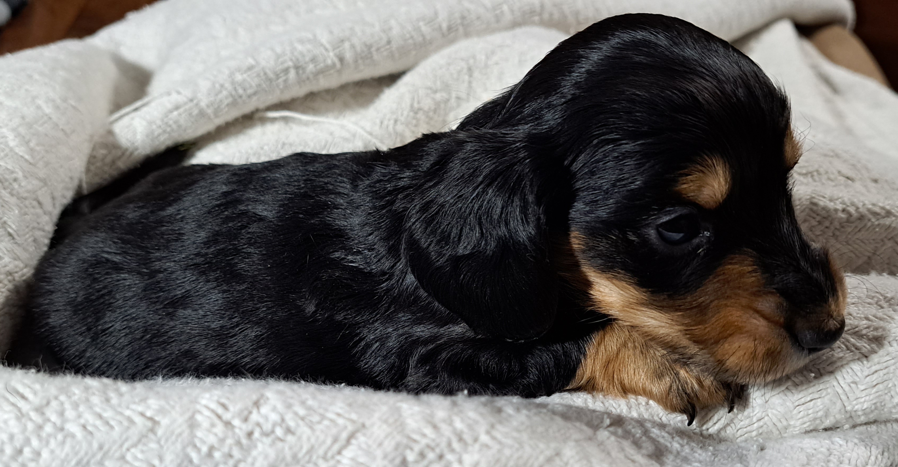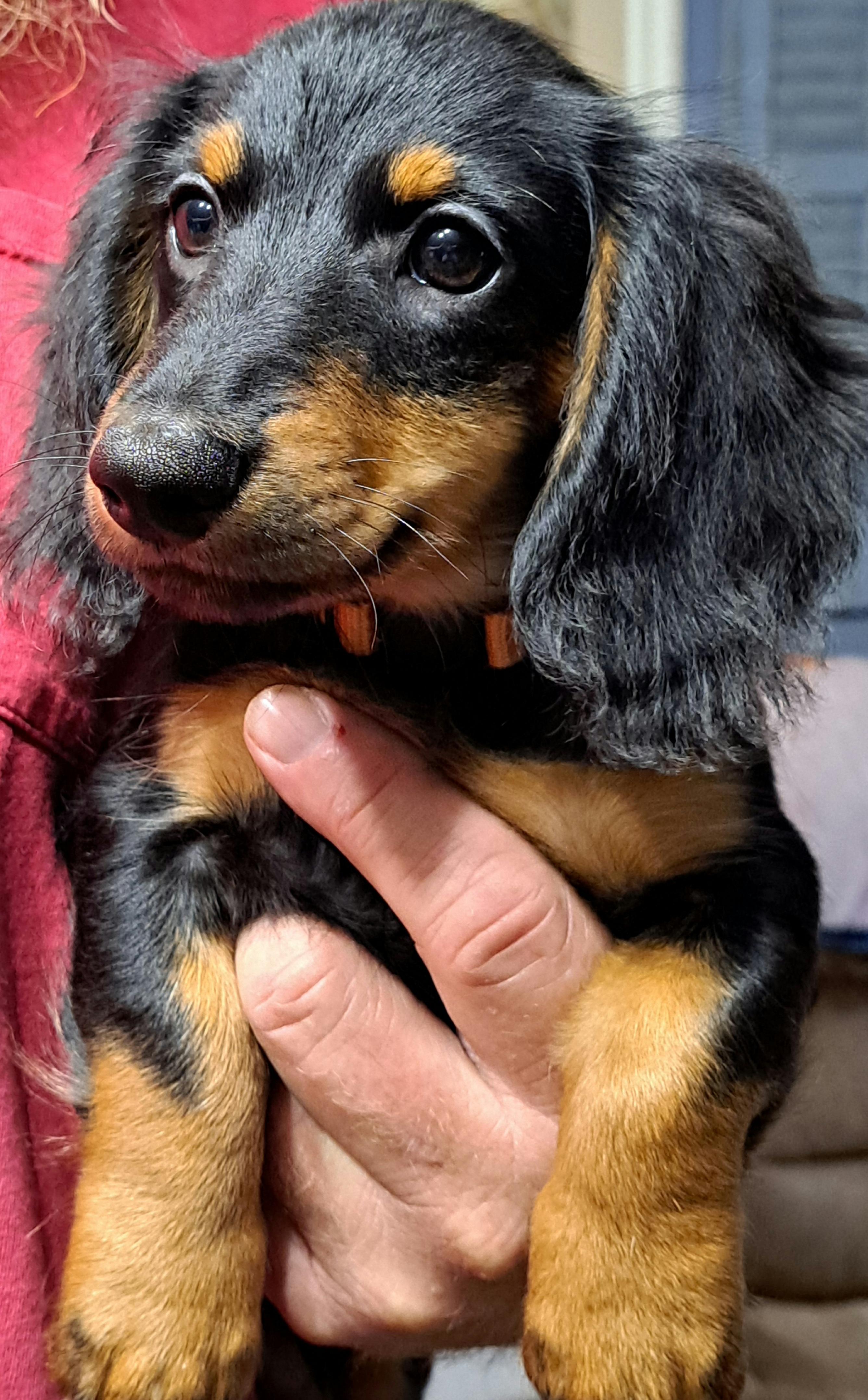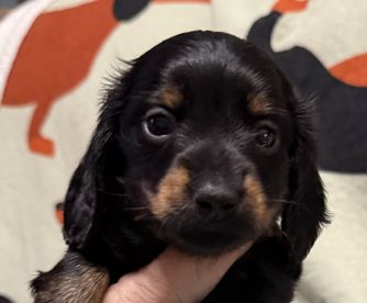 Dachshund puppies include smooth and longhaired coat varieties. Coat types may vary depending on the parent dogs.