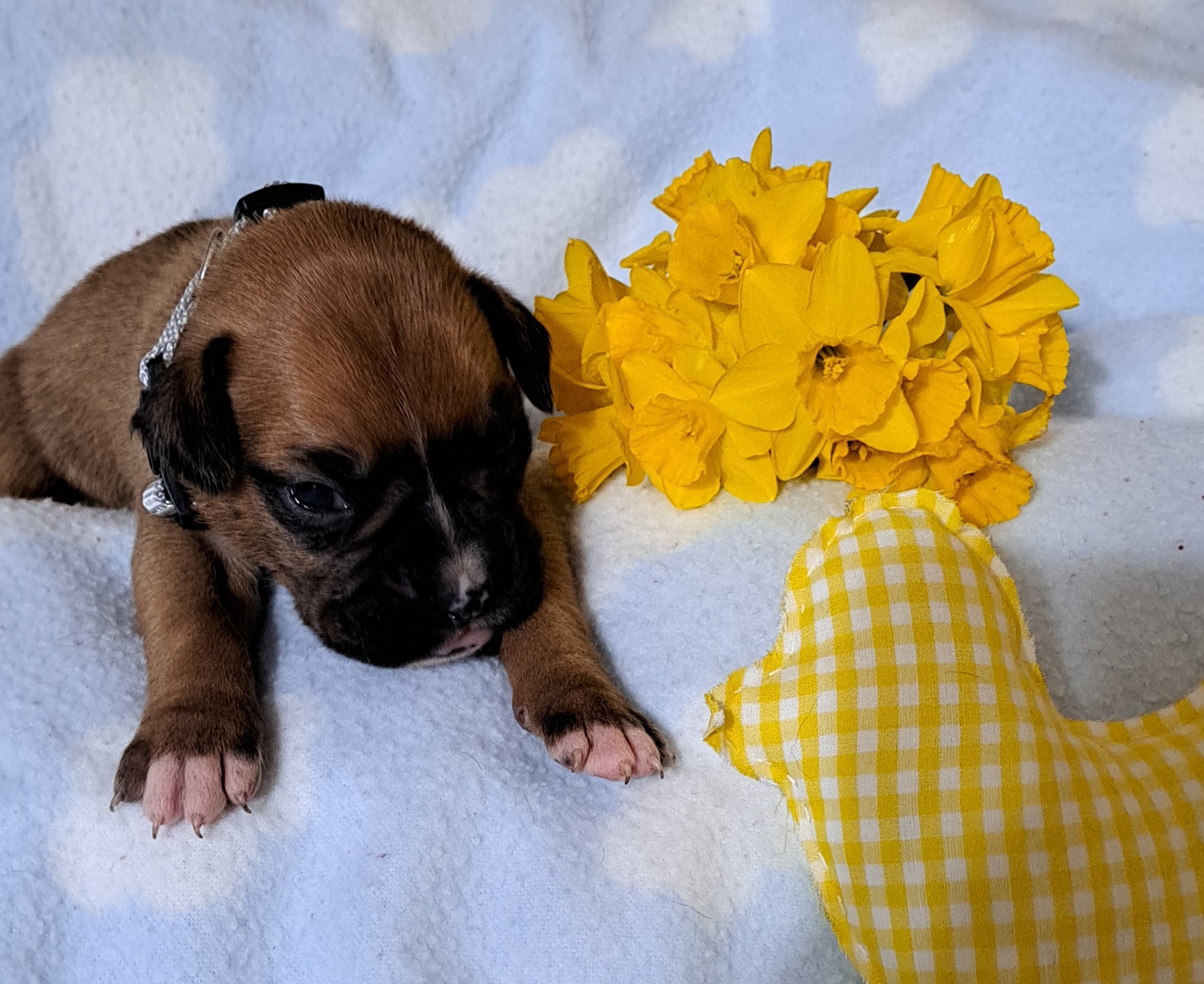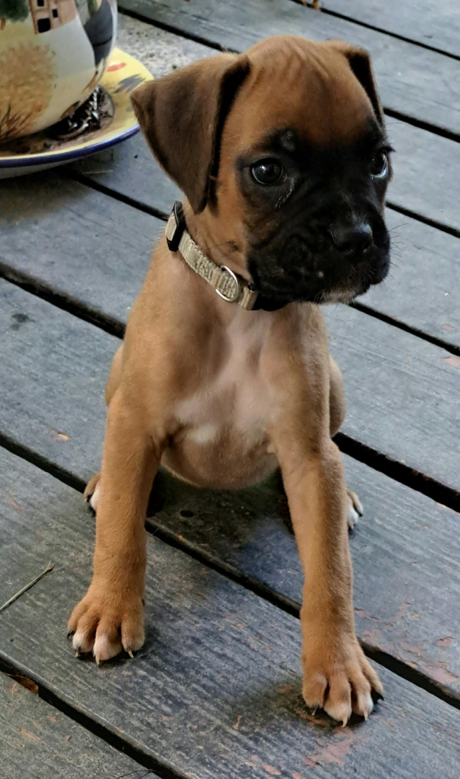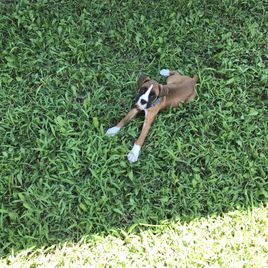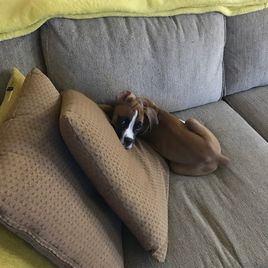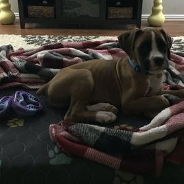 We LOVE our new fur-baby, Lenny! He's so much fun, is super cute, and just a true sweetheart. Leslie loves her dogs, and she's so knowledgeable about boxers and generously shared and advised on the care for our boy. She did an outstanding job with his initial training (potty-training on the pee pads, socialization with people and other dogs, non-aggressive behavior, and he enjoys listening to music). Lenny continues to learn and grow beautifully. It was a sincere pleasure and relief to work and communicate with Leslie. And we enjoyed getting the pictures and videos prior to picking up our little one. Thanks so much!!! And thanks Good Dog for your platform!