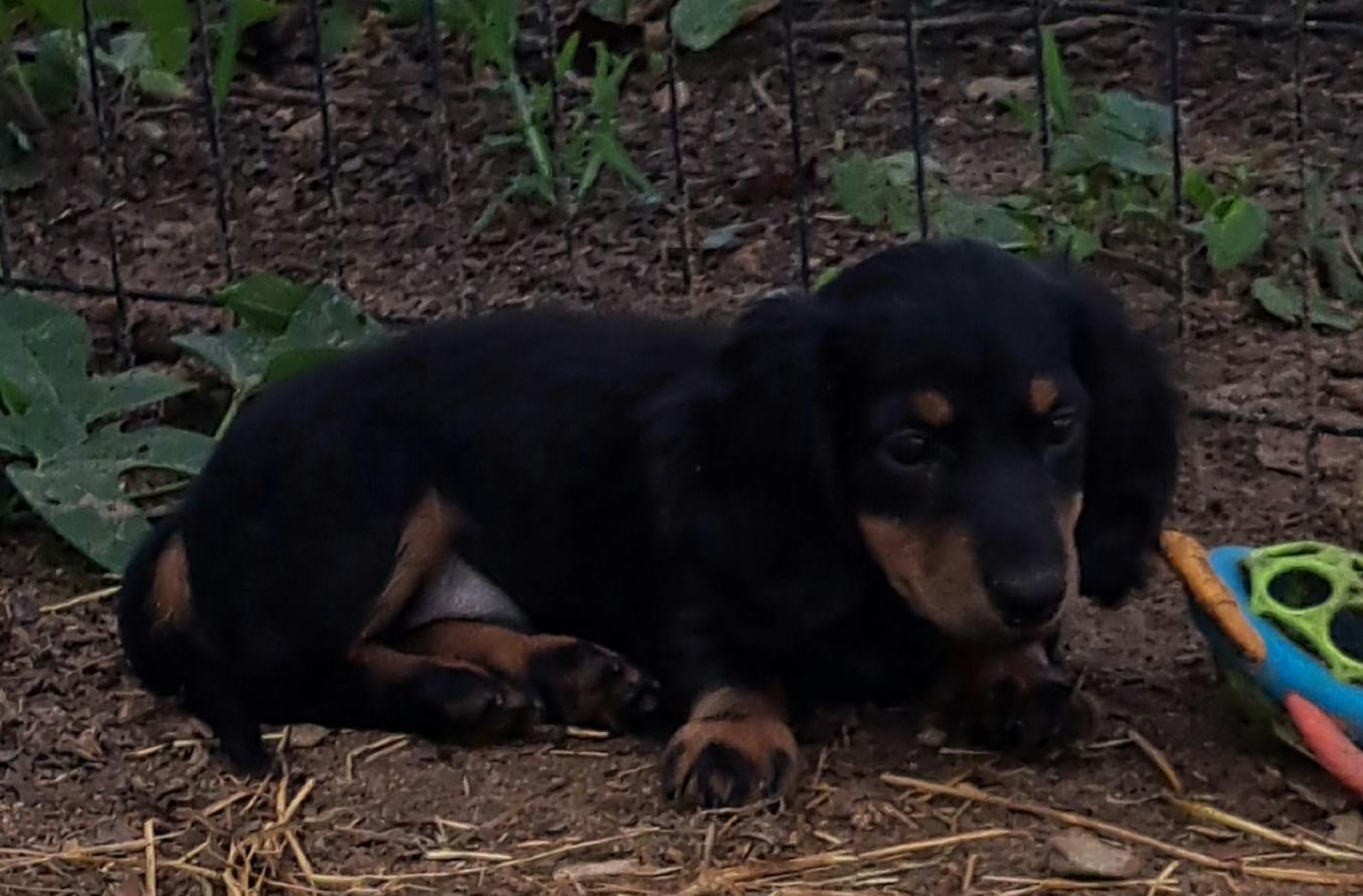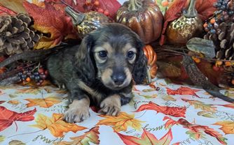 Dachshund puppies are miniature size. Sizes will vary depending on the parent dogs.
